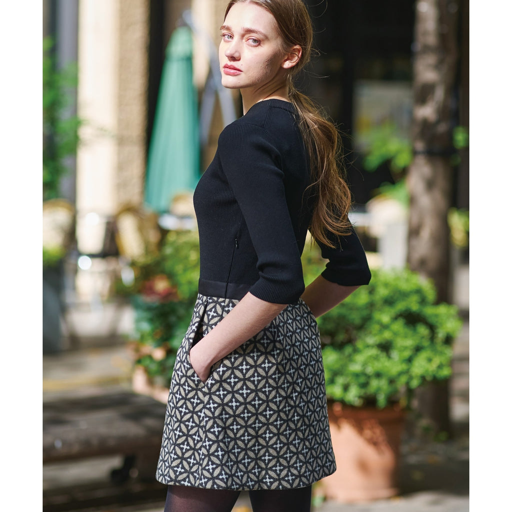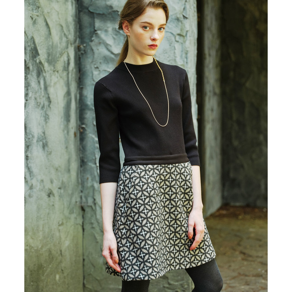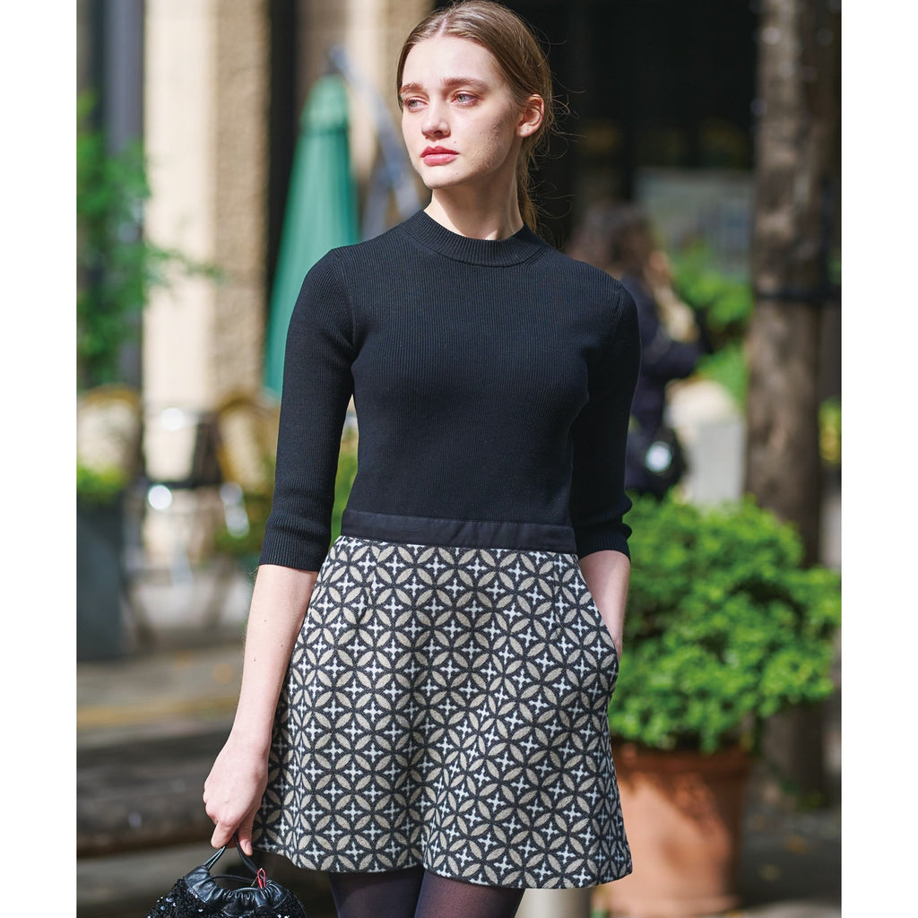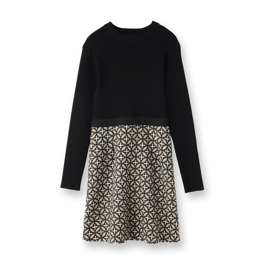 A cute combination dress has been completed, featuring a blend of DRESSTERIOR's original patterned knit!