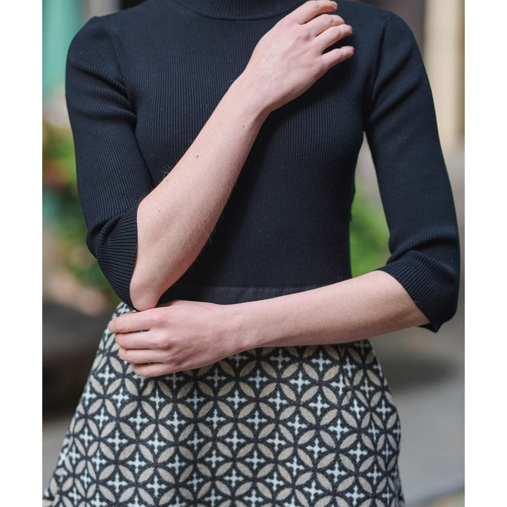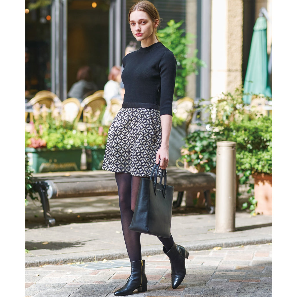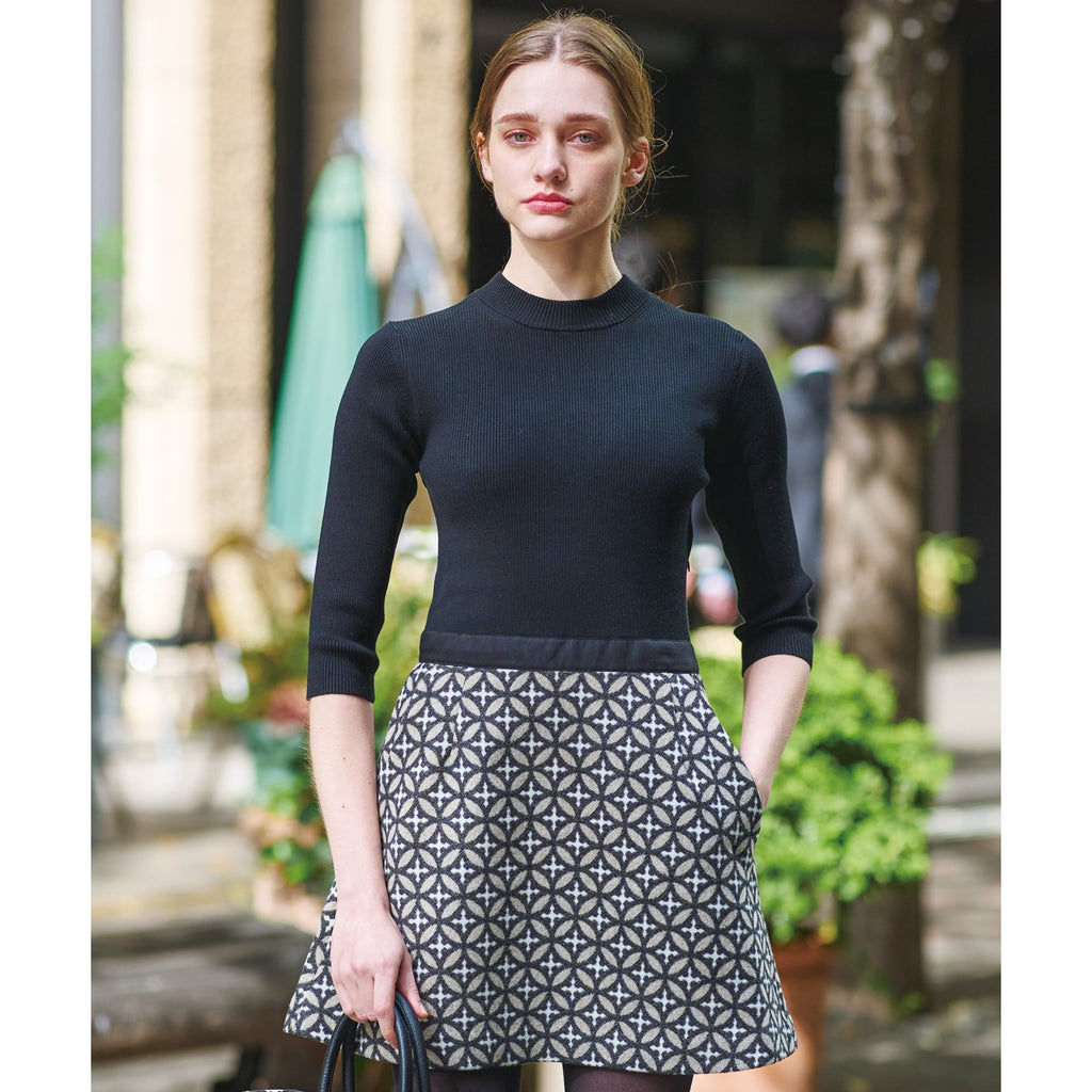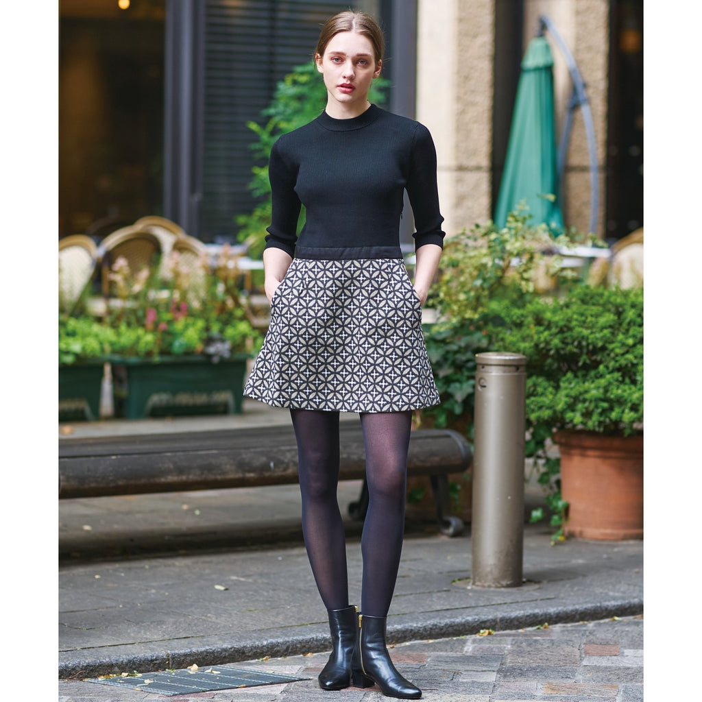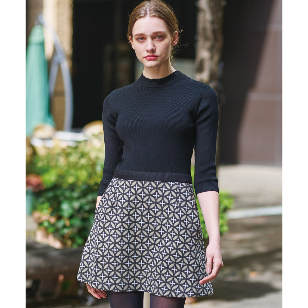 A cute combination dress has been completed, featuring a blend of DRESSTERIOR's original patterned knit!