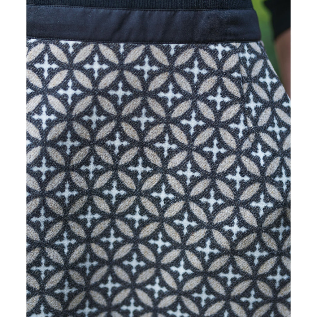 Outer fabric: Upper body Rayon 59% Polyester 26% Nylon 14% Polyurethane 1% Skirt part Wool 100% Belt part Polyester 64% Rayon 30% Polyurethane 6% Lining: Polyester 100%