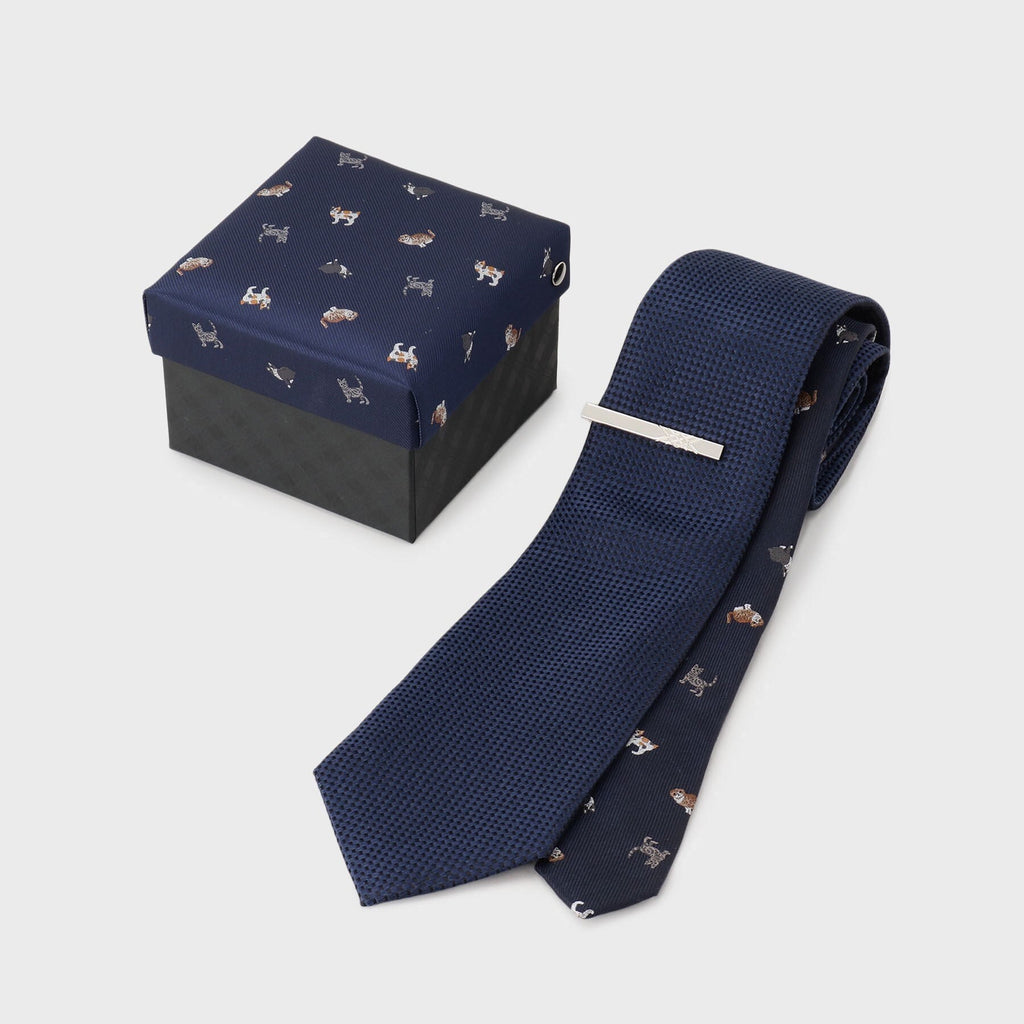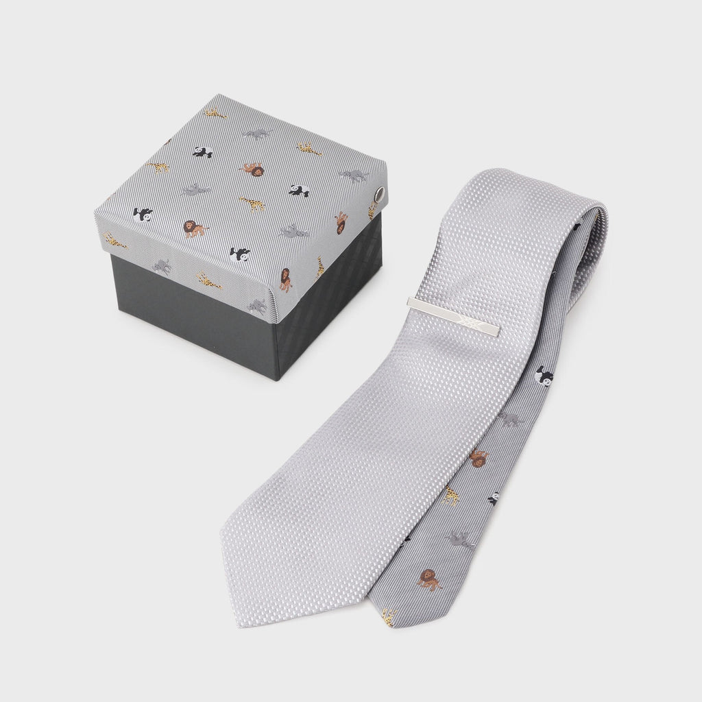 This set includes a tie and tie bar with a design that is easy to match and playful, making it a highly appreciated item for gifts.