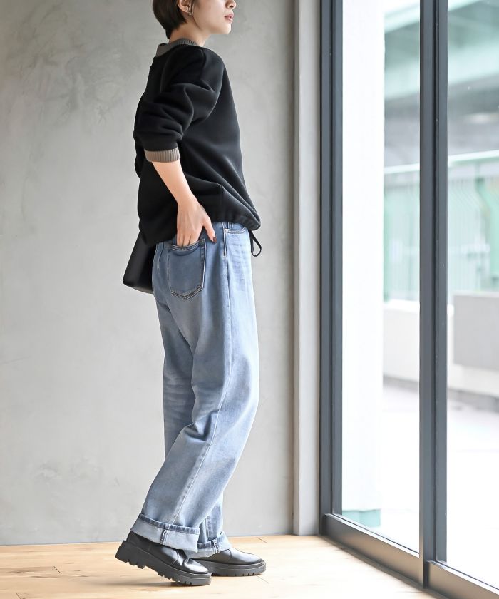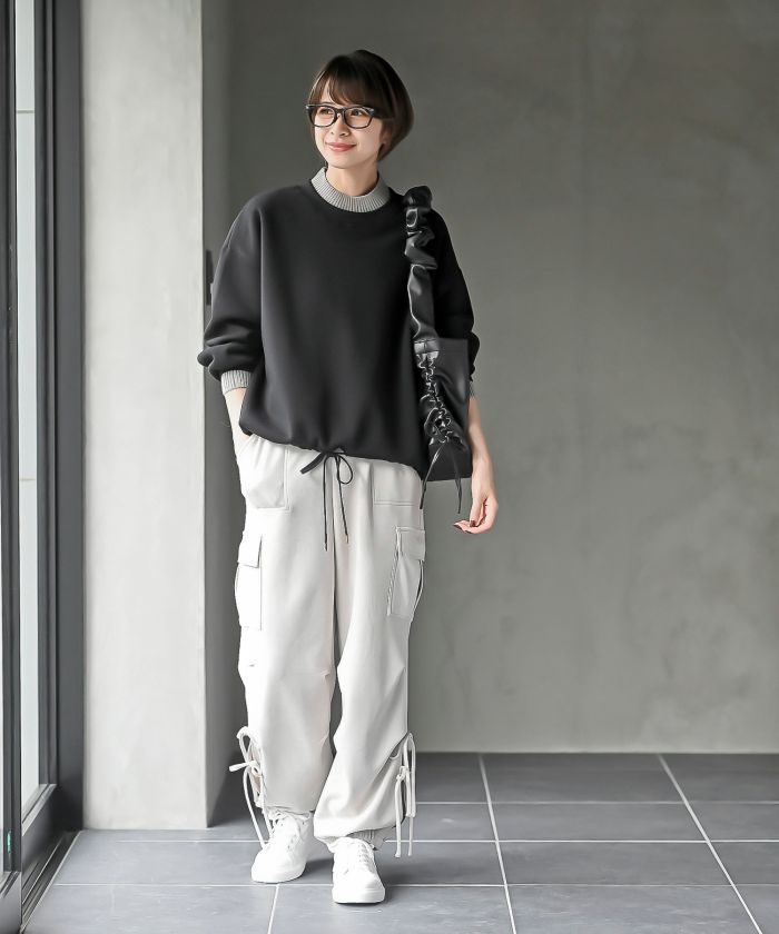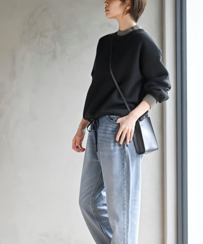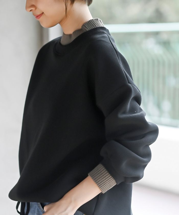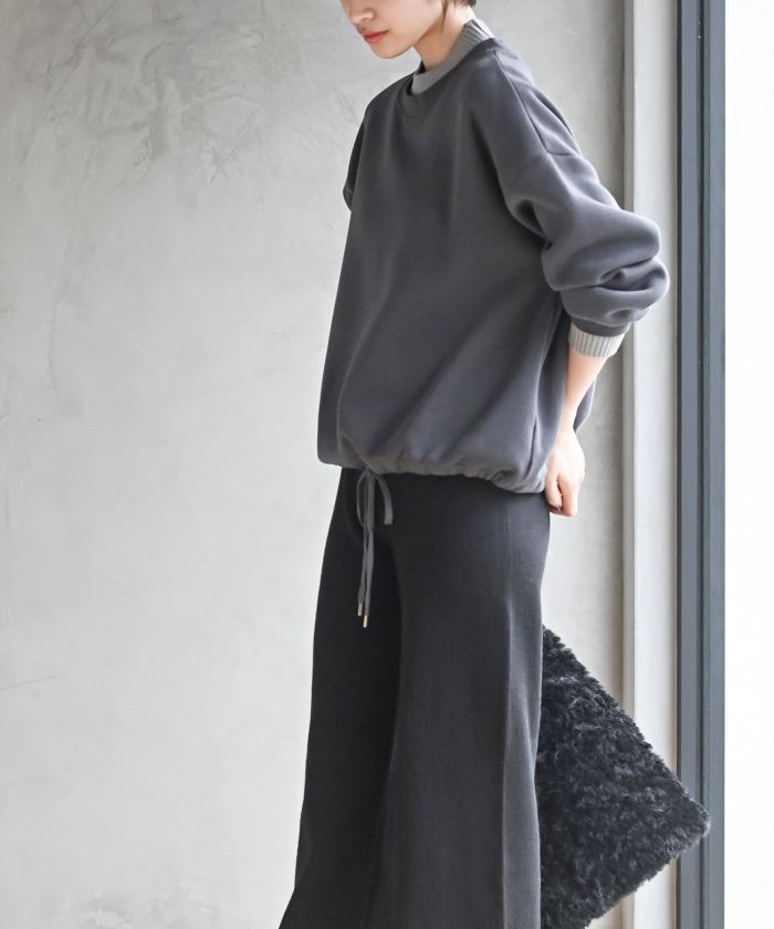 A top that allows you to enjoy a change in silhouette with the ribbon at the hem.