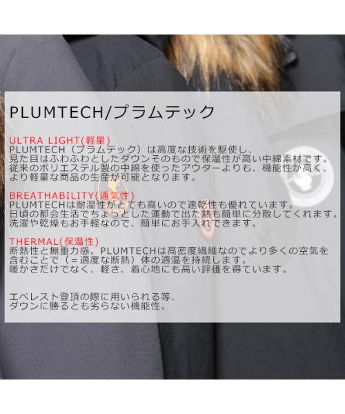 This eco-friendly hooded jacket uses a newly developed material "PLUMTECH" (high-tech polyester cotton) instead of down feathers for the filling.