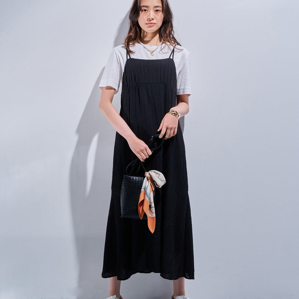 INDIVI INDIVI 【Washable / Textured Material】Shirred Material Camisole Dress
