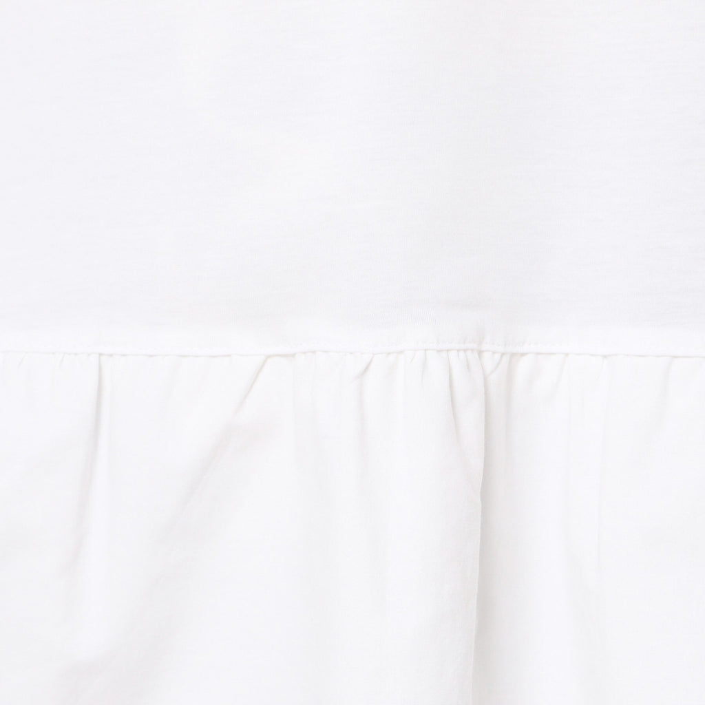 The waistline is straight, and the ruffle design is characterized by not being too sweet.