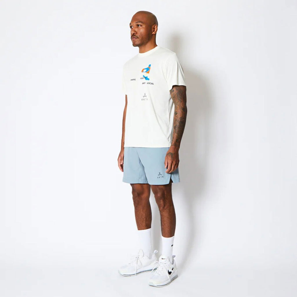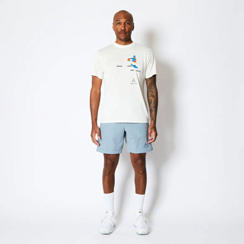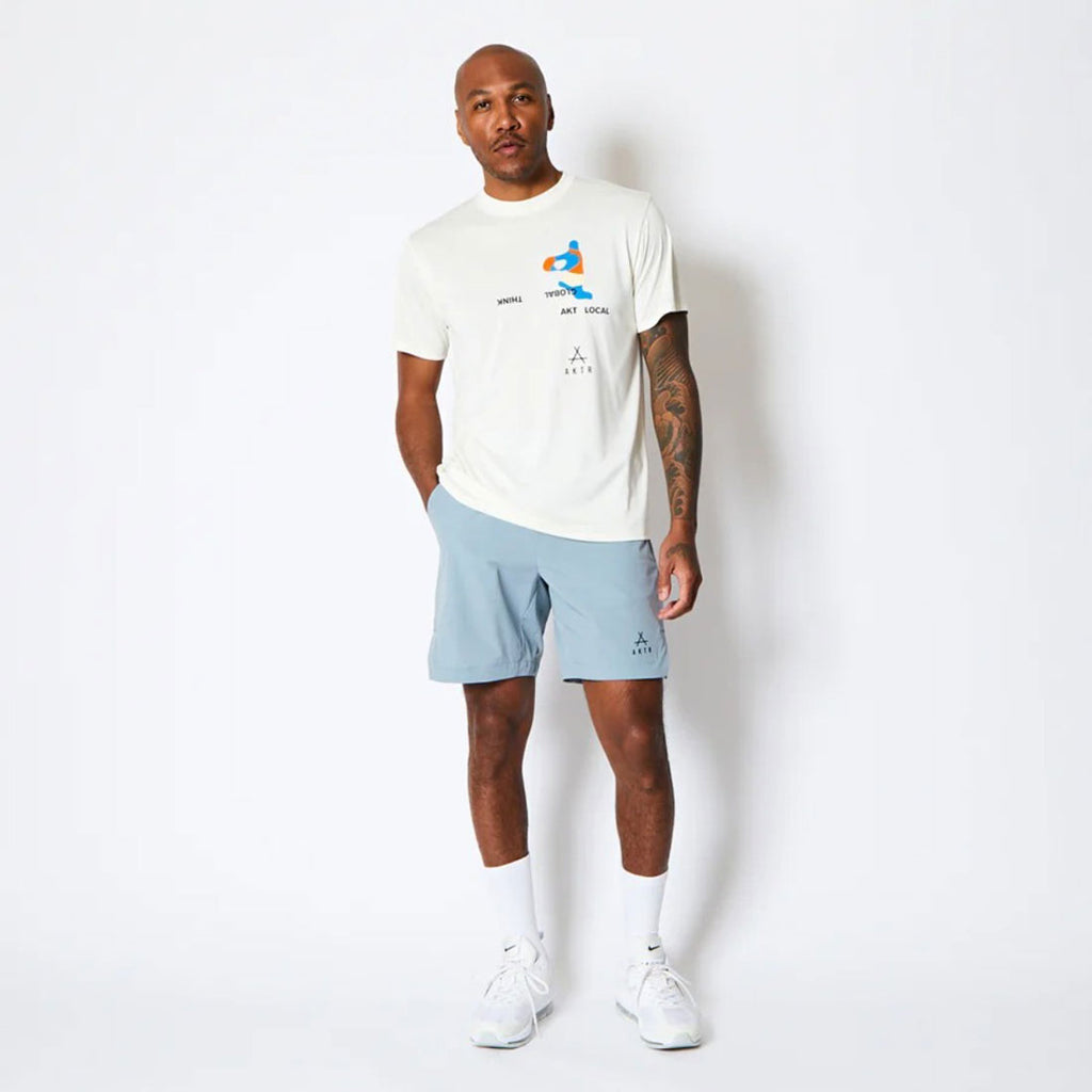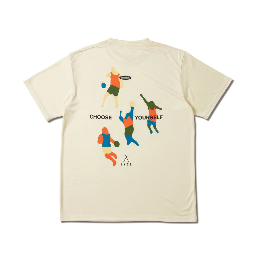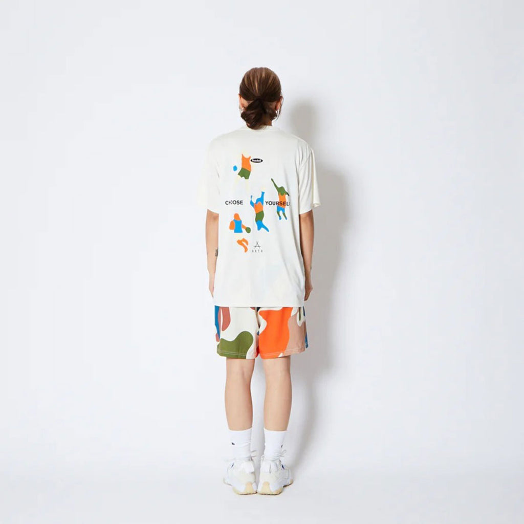 A short-sleeved T-shirt decorated with vibrant graphics.