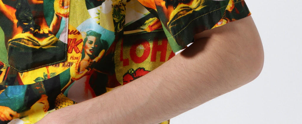 Aloha shirts finished with our unique creations emit a one-of-a-kind presence, and the sewing is entrusted to dress shirt artisans, releasing works with meticulous attention to detail.