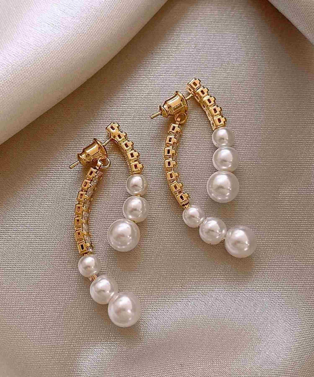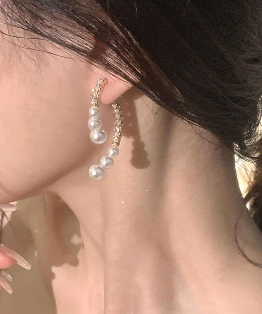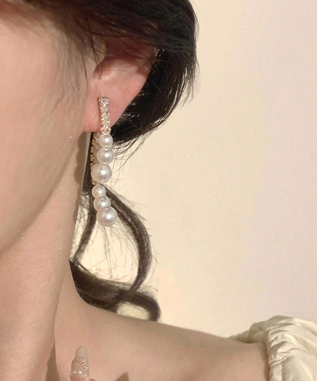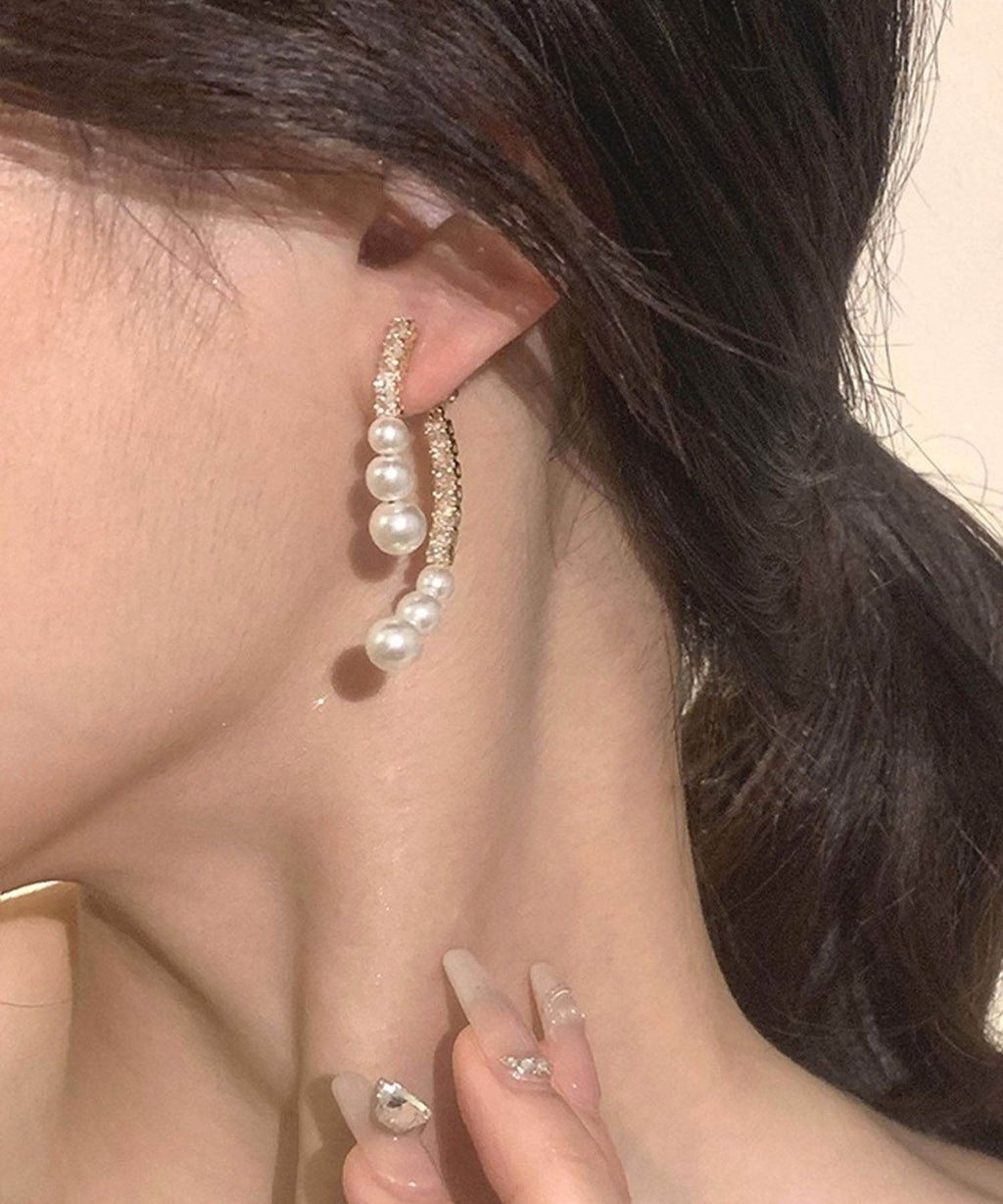 Elegant earrings with pearls and bijoux that shine near the ears, creating a soft and gentle atmosphere.