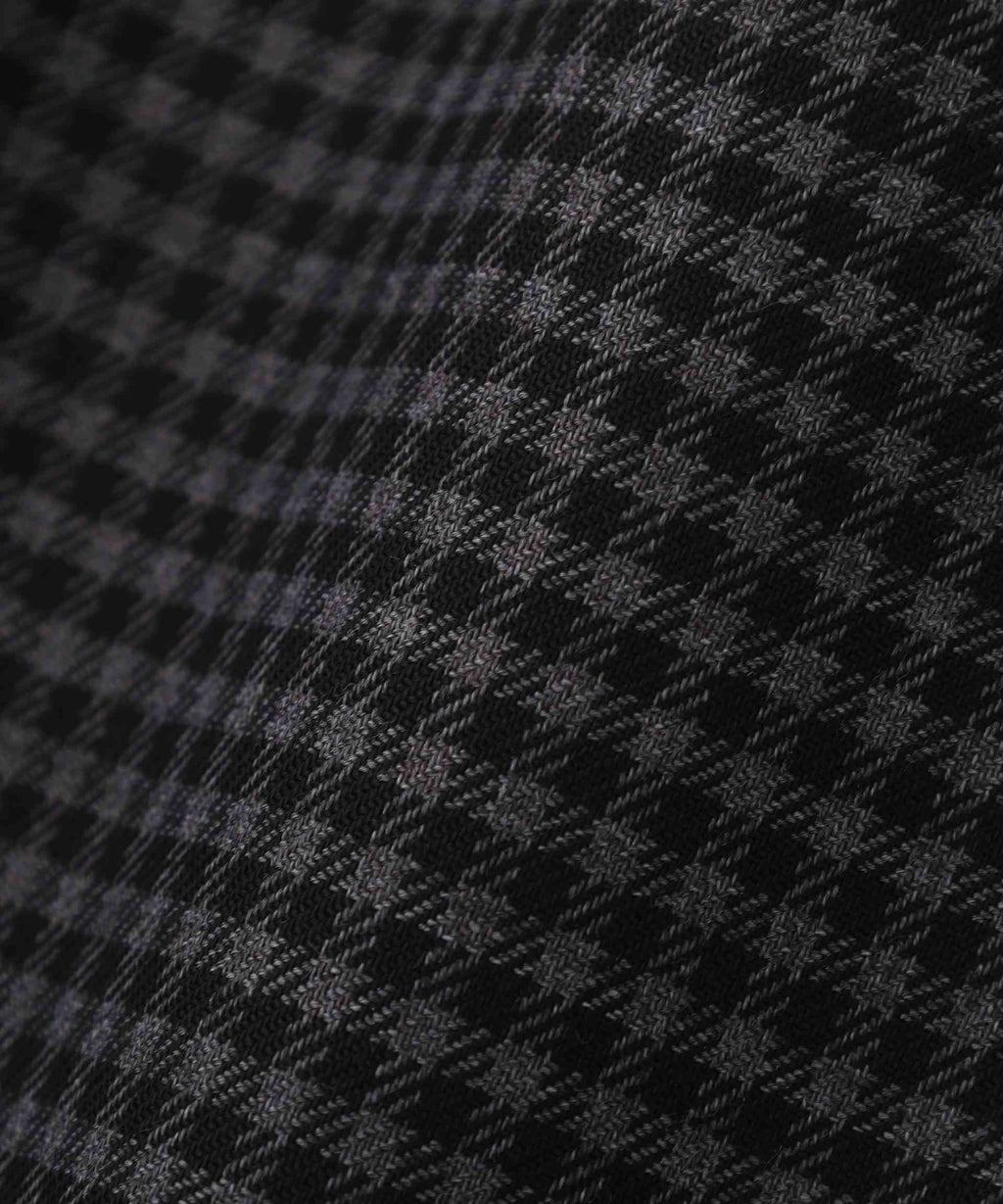 A lightweight original check with a quick-drying wool-polyester blend fabric. The check pattern is clearly visible in Moca brown with green accents, and there are two color options: gray and black gingham.