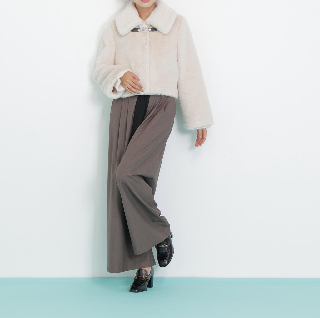 Season mood perfect fake fur short jacket. Its fluffy texture, which makes you want to touch it, is charming, and just wearing it gives a glamorous impression. The short length, which is easy to balance, pairs perfectly with dresses and high-waist bottoms. This is a main-actor class outerwear that can be active from everyday use to special days. *Please note that due to lighting during photography, the color may appear different.*
