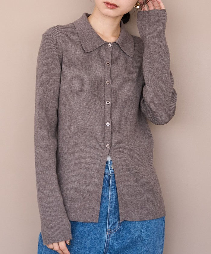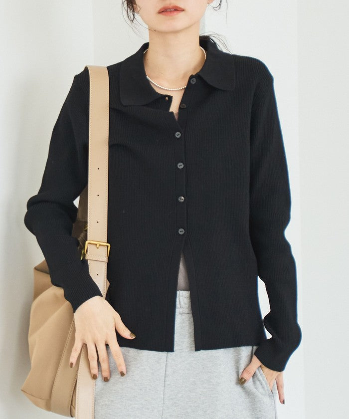 A wool-blend knit cardigan with a soft touch. It is a versatile item that can be worn as a single piece or as an outer layer. The moderate size makes it easy to match with any bottoms and is active in daily wear. Pairing it with the camisole made of the same material completes a stylish look for this year.