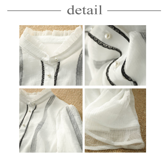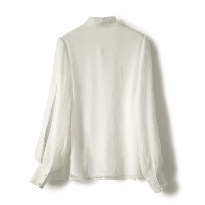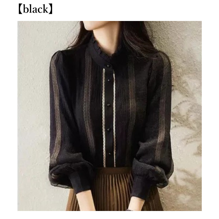 Lightweight sheer feeling makes this high-neck frill chiffon blouse perfect for the upcoming season.