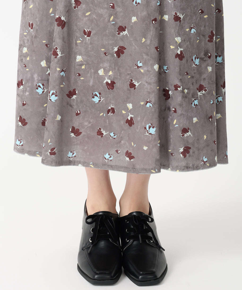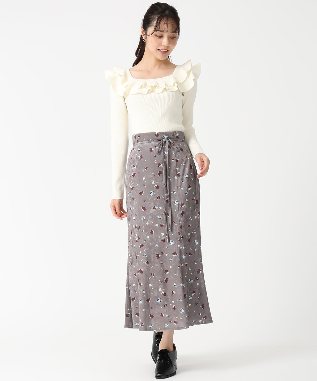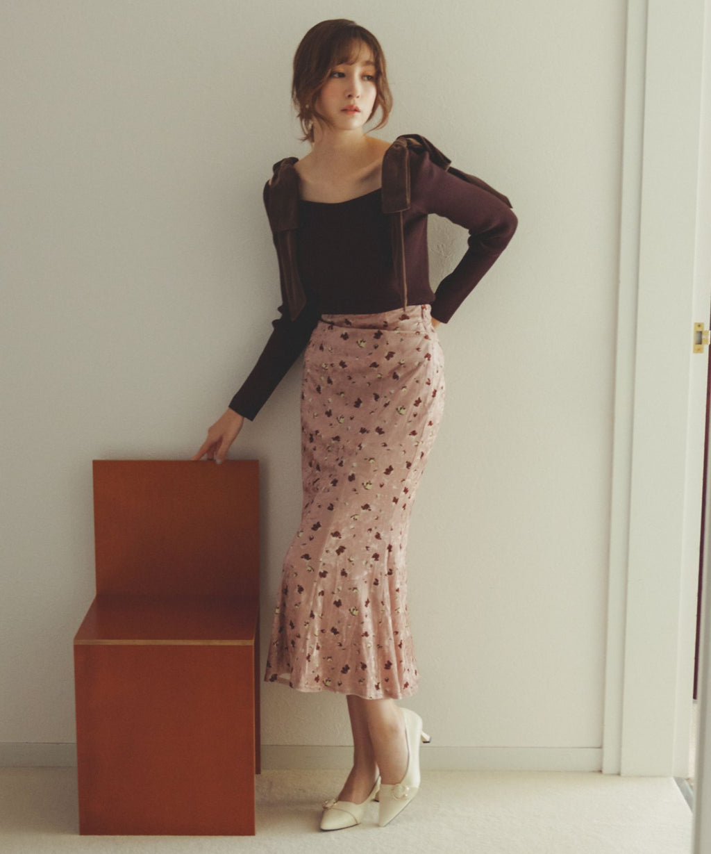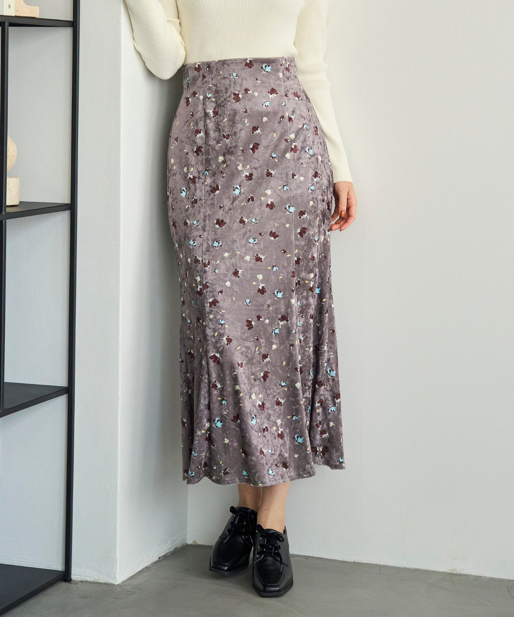 A skirt made of smooth velvet material that gives a warm impression.