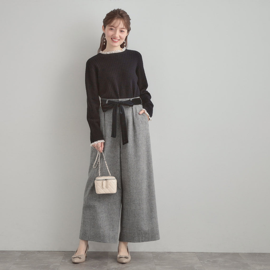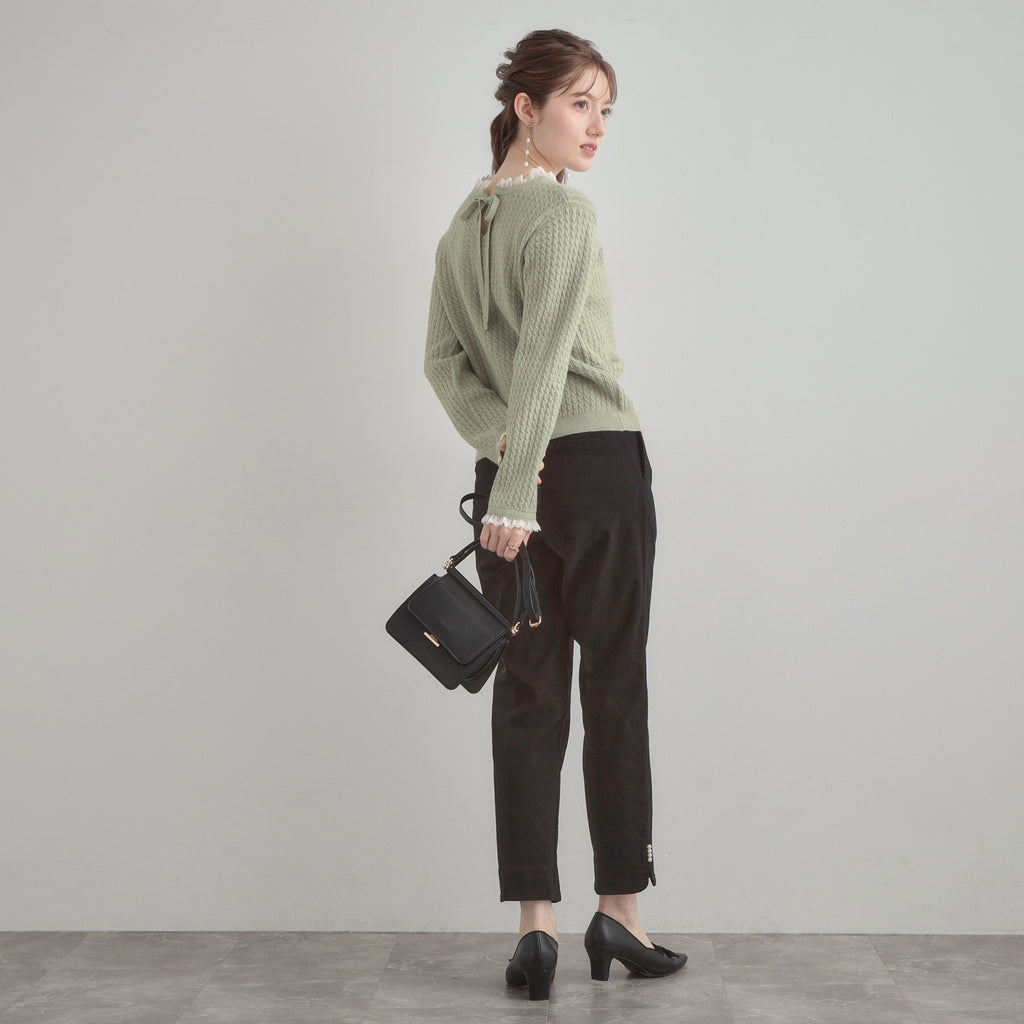 The lace design at the neckline and sleeves adds an accent to the coordination. Of course, it can be paired with bottoms on its own.