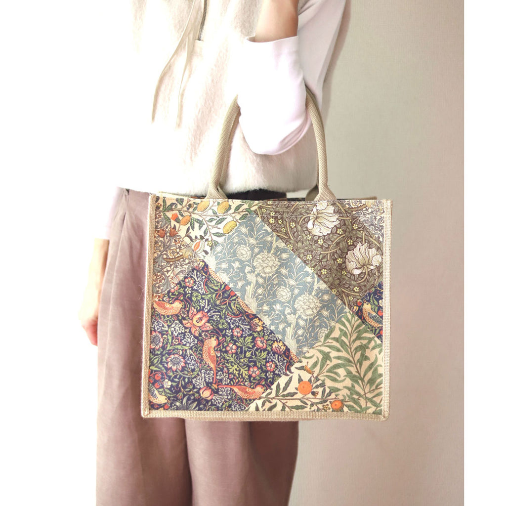 This is a print that utilizes a modern taste that pairs well with jute material.