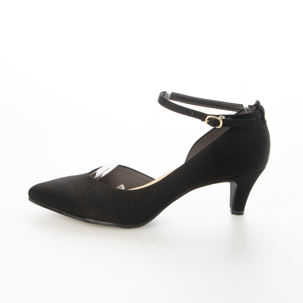 IKplus 【Made in Japan】【Rain Compatible】Beautiful Leg Posture V-Cut Line Neck Belt Pumps【For Both Sunny and Rainy Weather】 1935 black Dorkray Satin Mary Jane