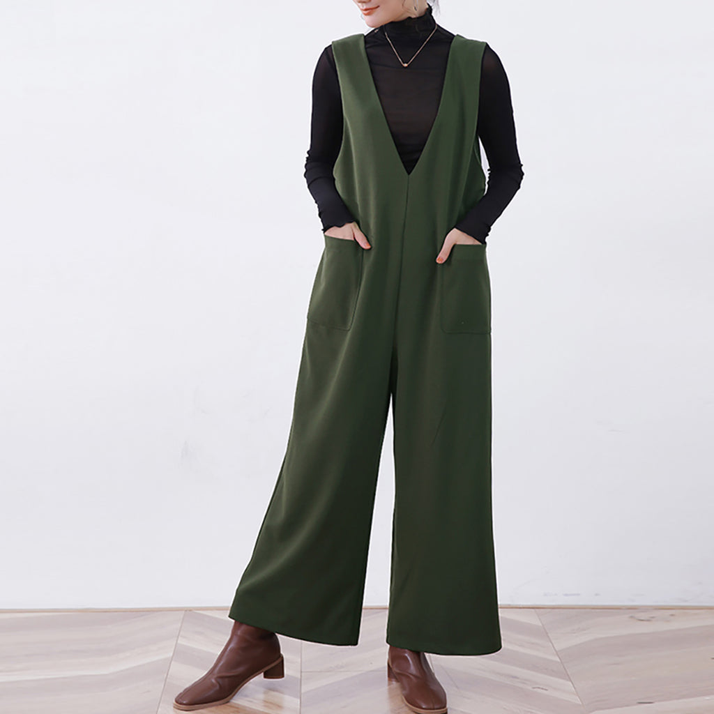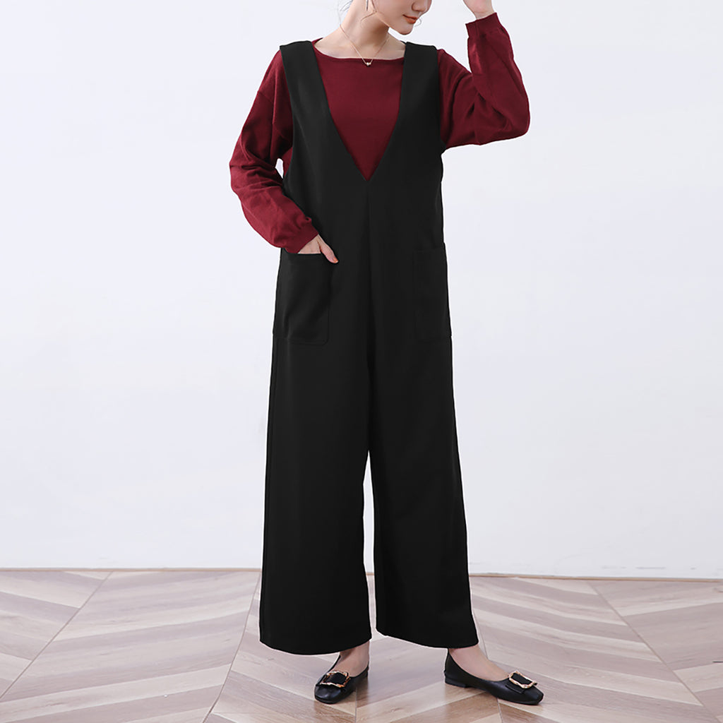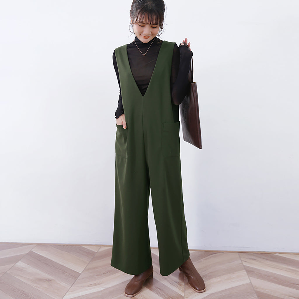 ◇Doux Belle Autumn New Arrival Overall Women's Jumpsuit Maxi Length Long Length Loose Fit Body Covering V-Neck