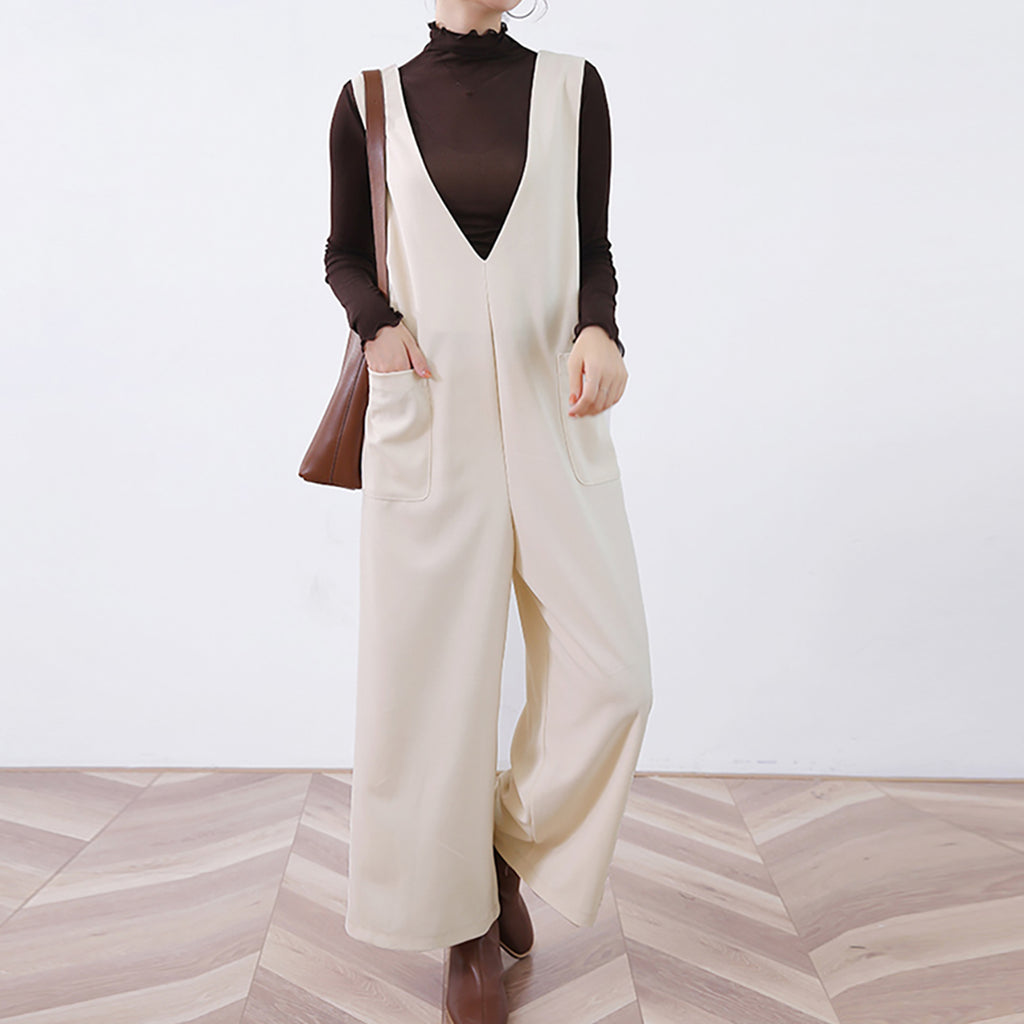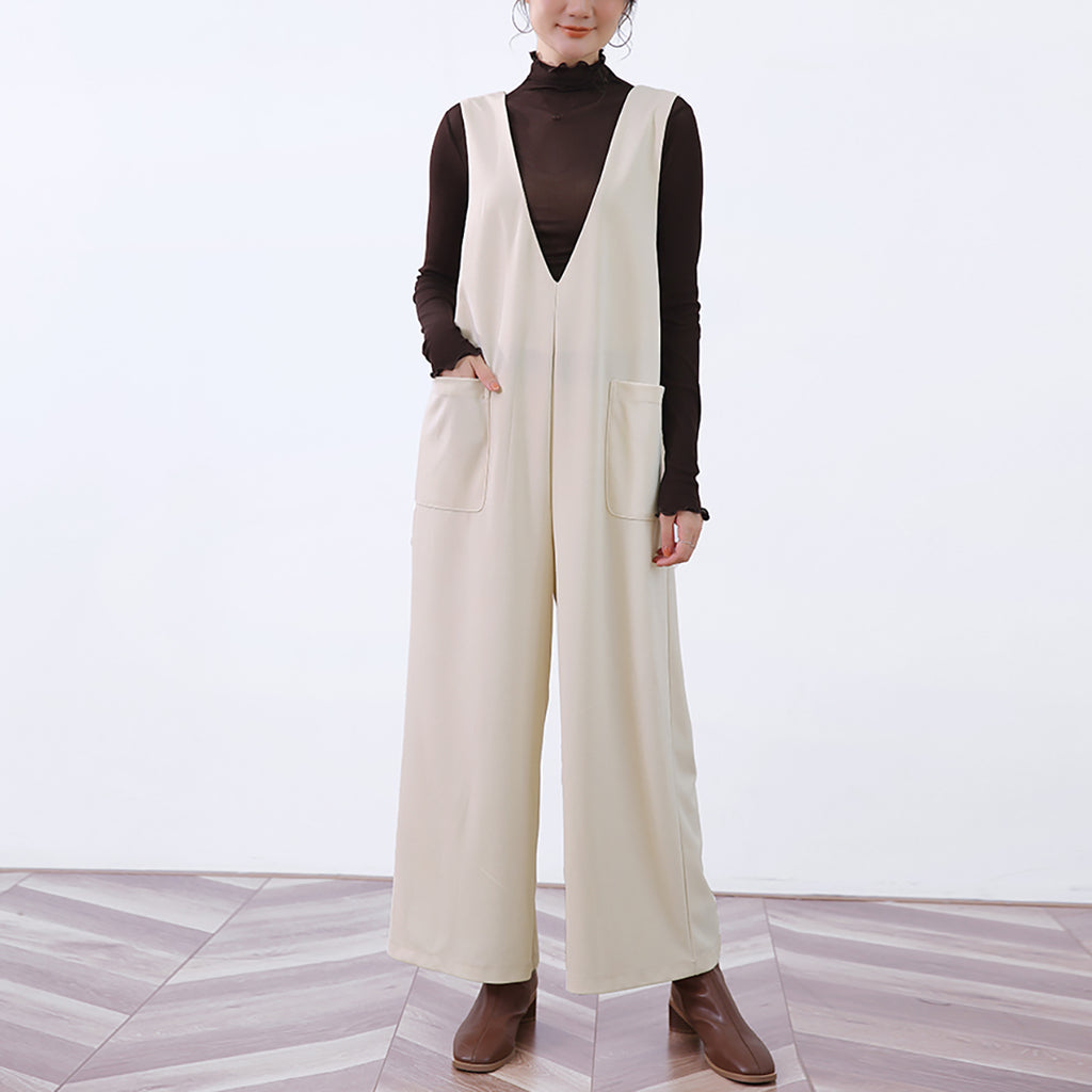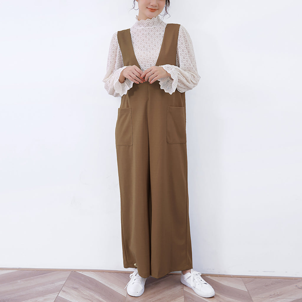◇Doux Belle Autumn New Arrival Overall Women's Jumpsuit Maxi Length Long Length Loose Fit Body Covering V-Neck
