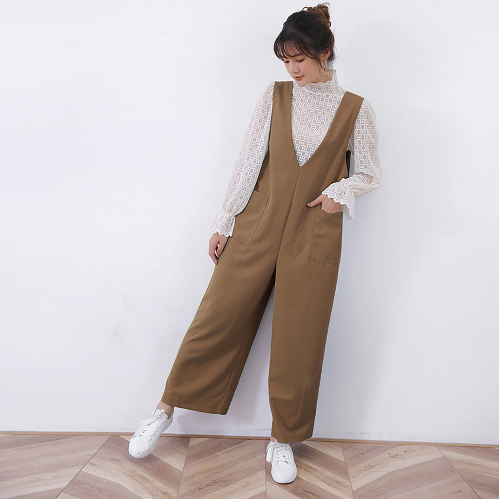 Doux Belle Autumn New Arrivals All-in-one Women's Overalls Maxi Length Long Length Loose Fit Body Covering V-neck