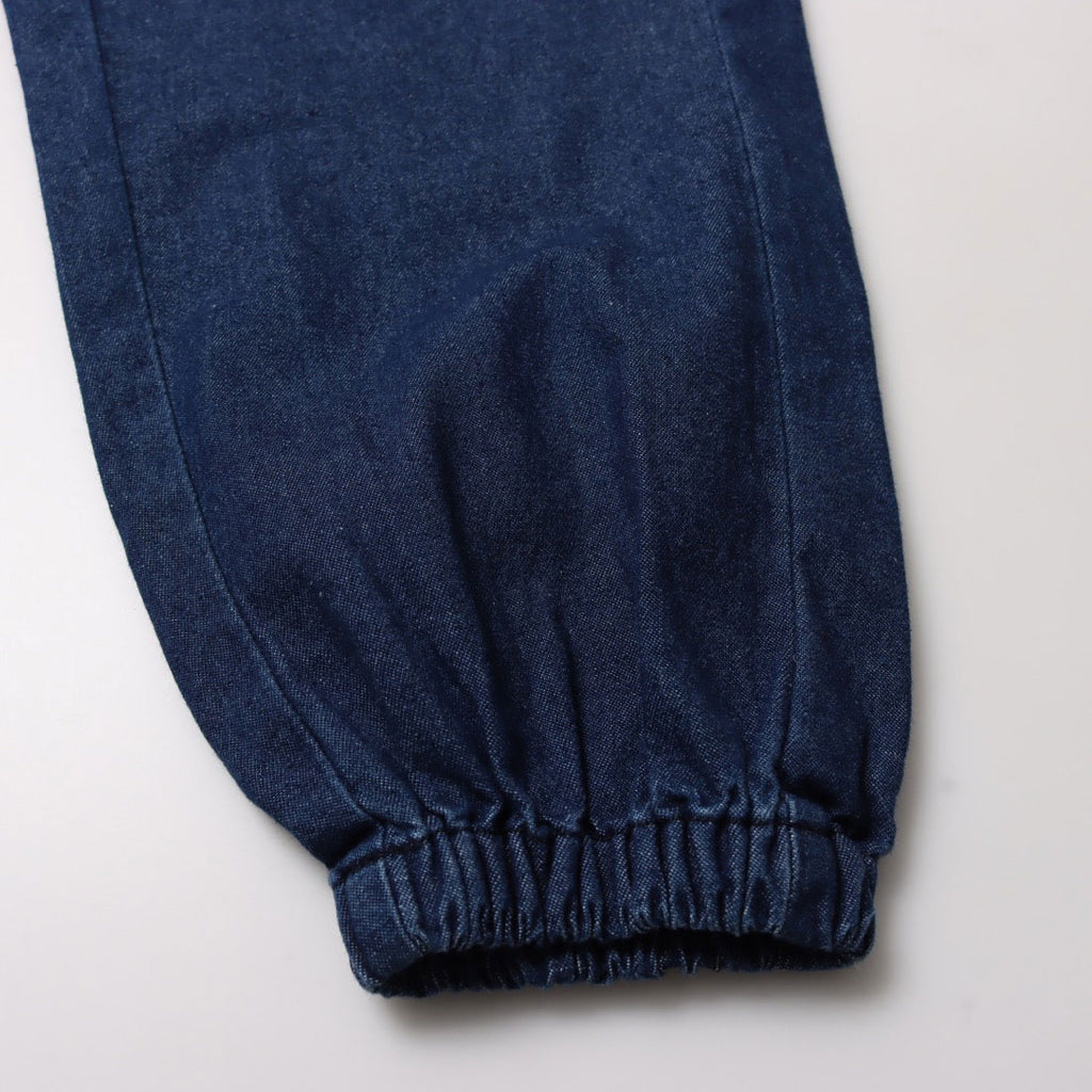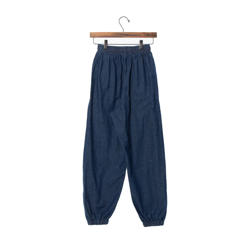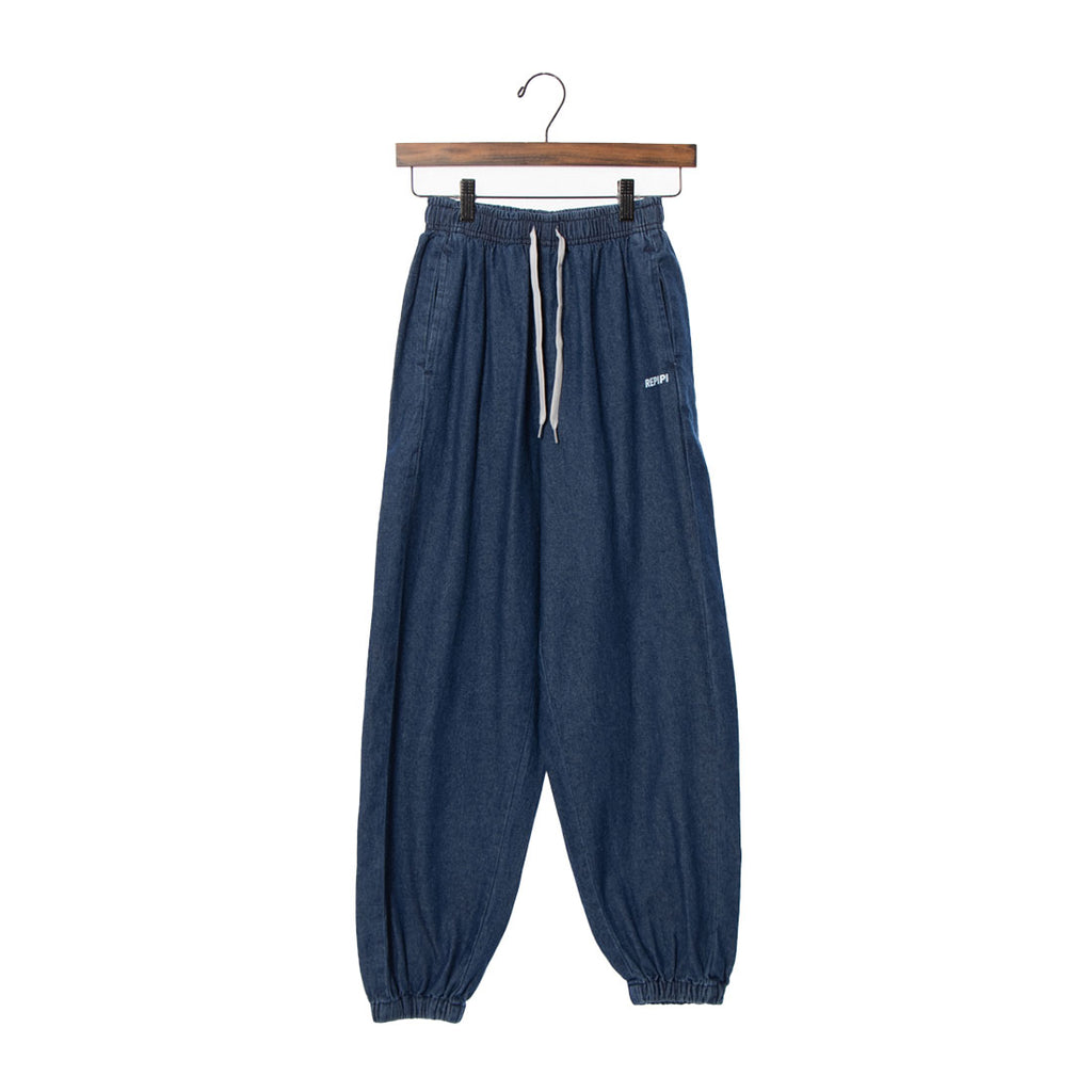 These are lightweight denim pants that prioritize ease of movement and silhouette as practice wear for dance.