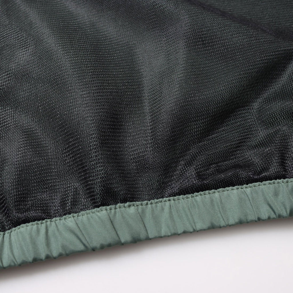 The thin and lightweight polyester hooded parka features a mesh lining, making it less likely to stick to the skin even when sweating, and it is also convenient to carry.