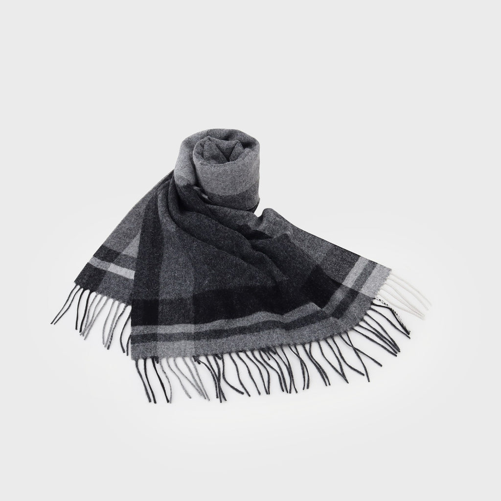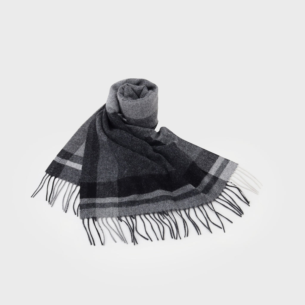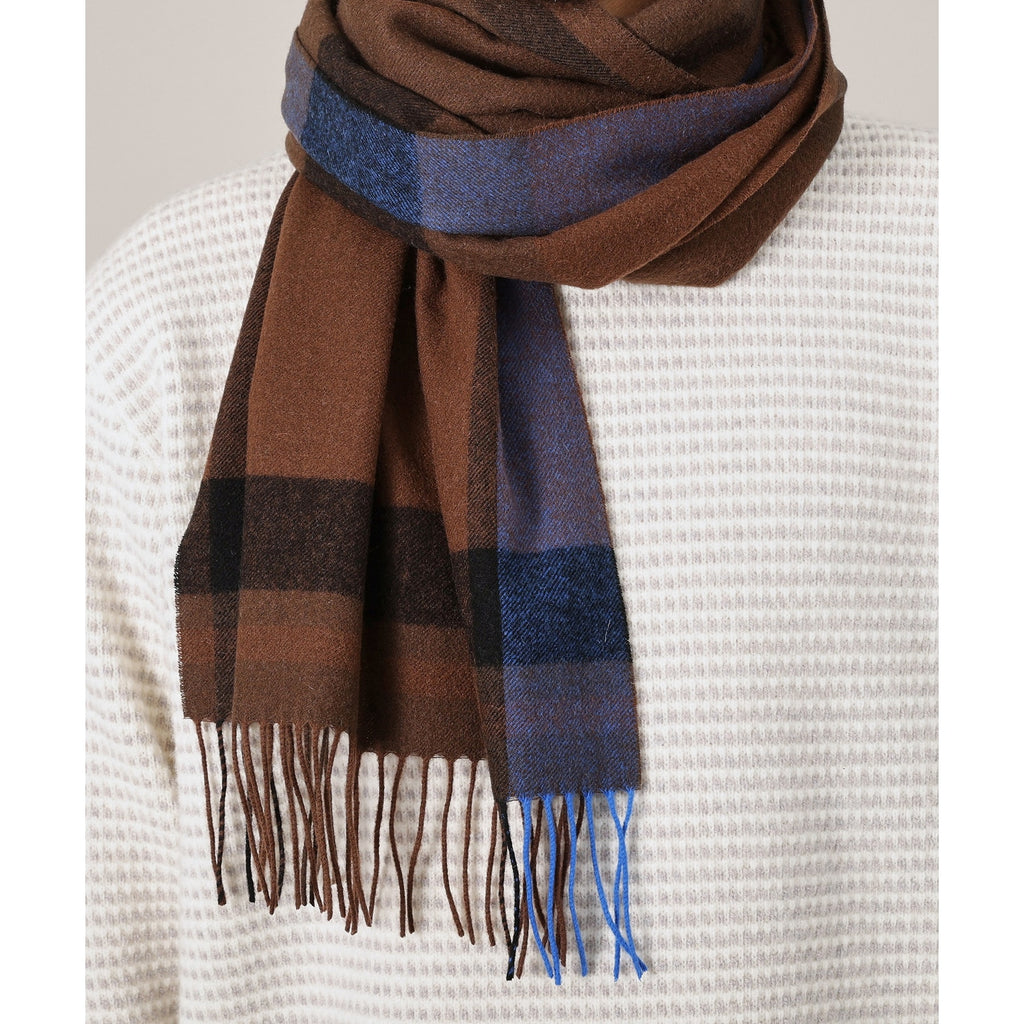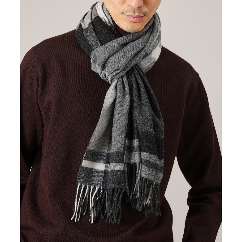 This large tartan check patterned scarf is made from merino wool material produced in Australia.