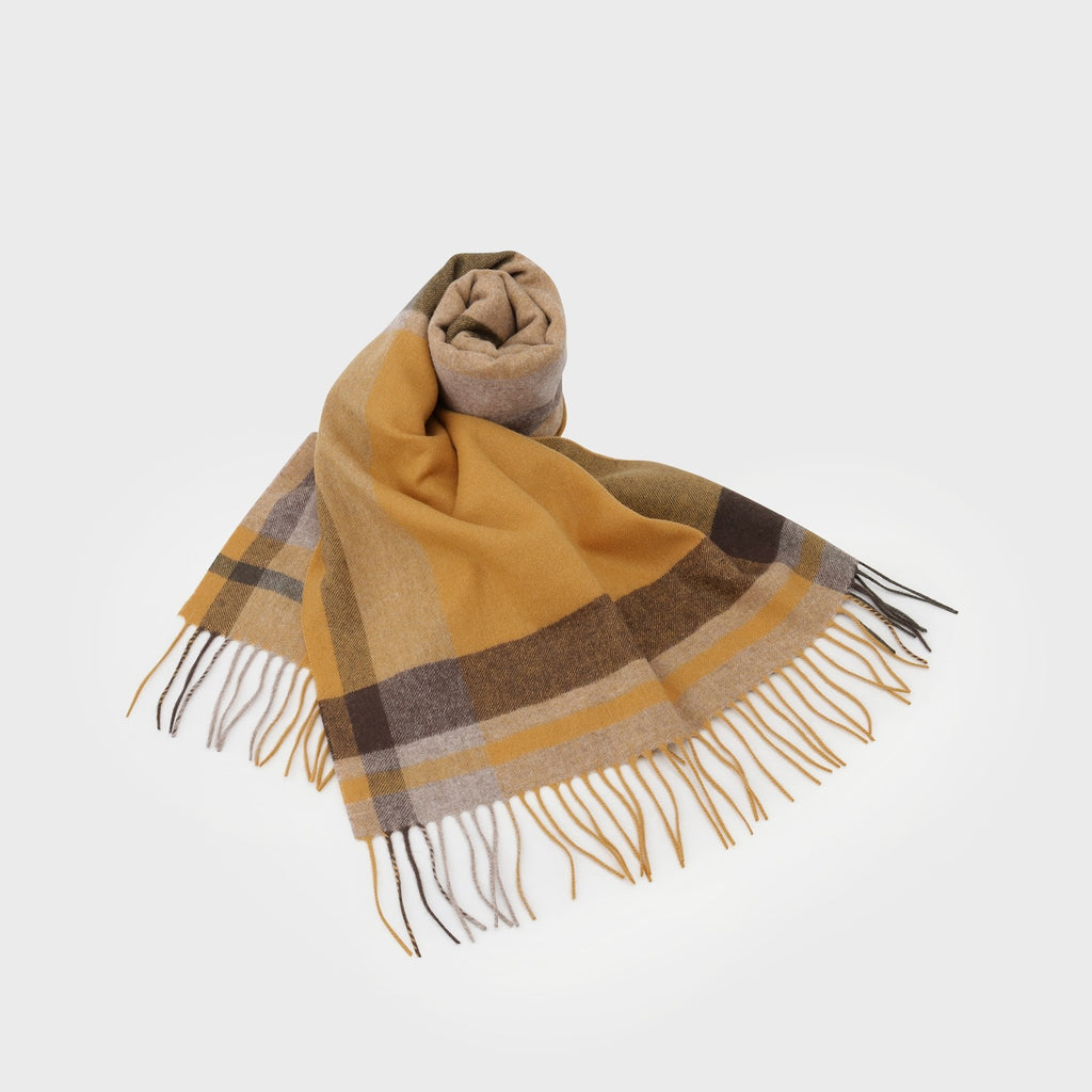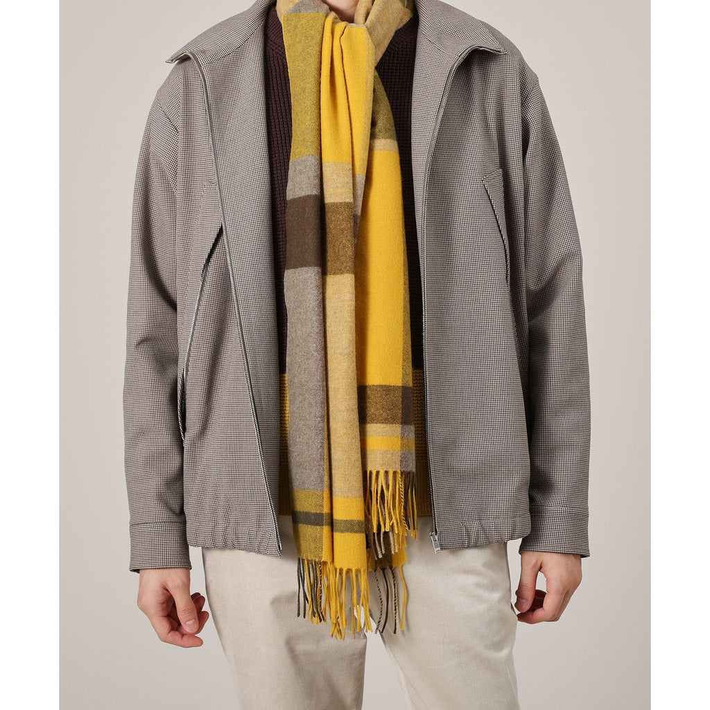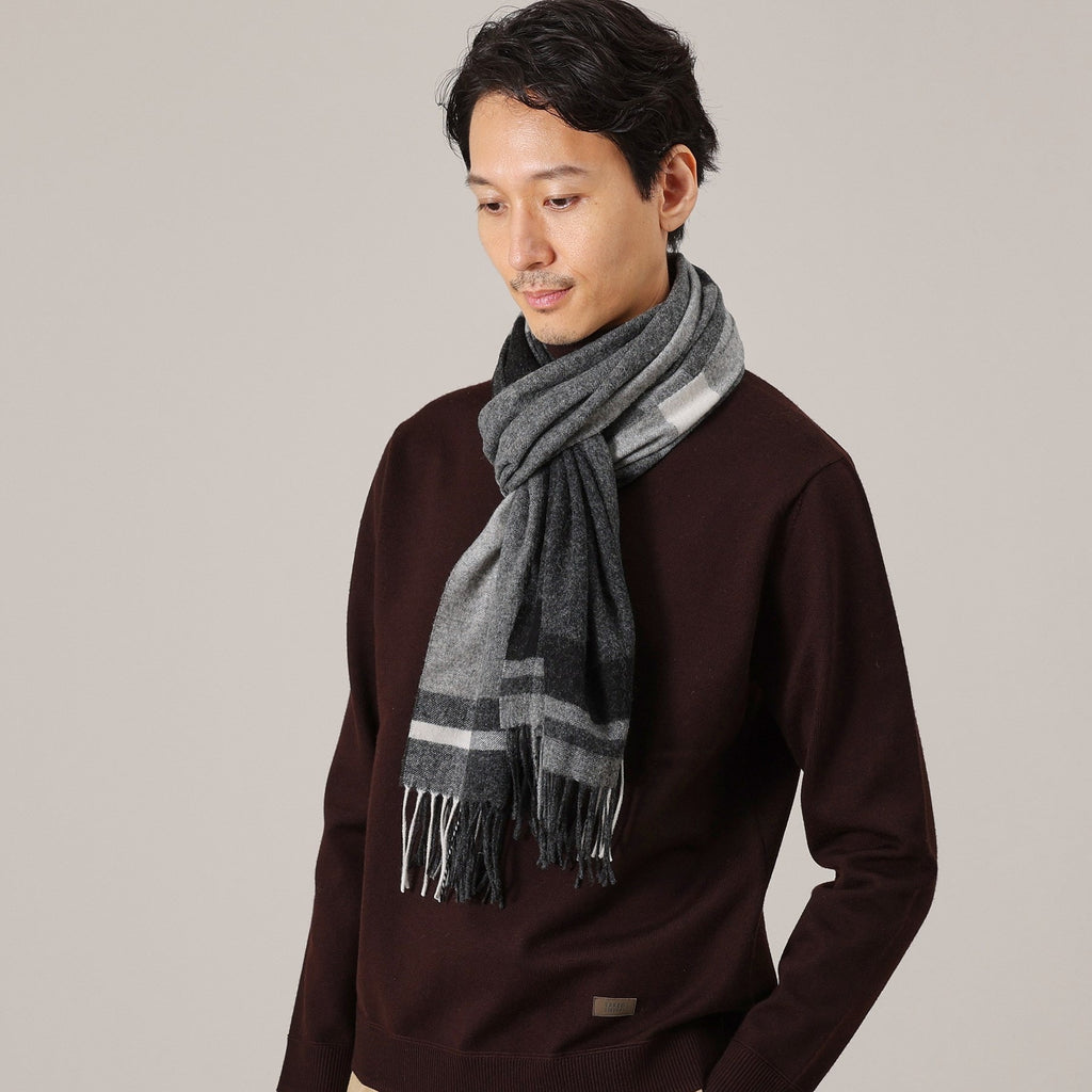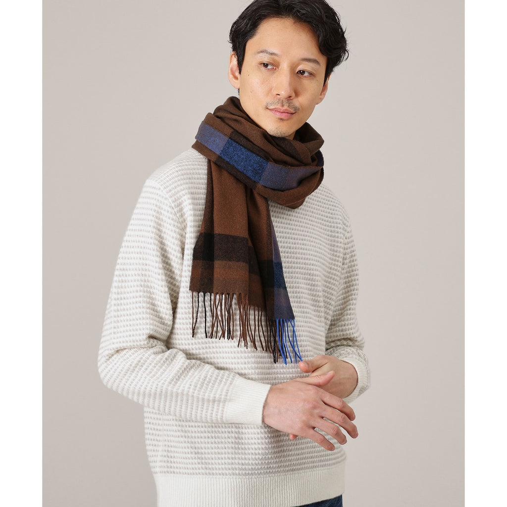 This large tartan check patterned scarf is made from merino wool material produced in Australia.