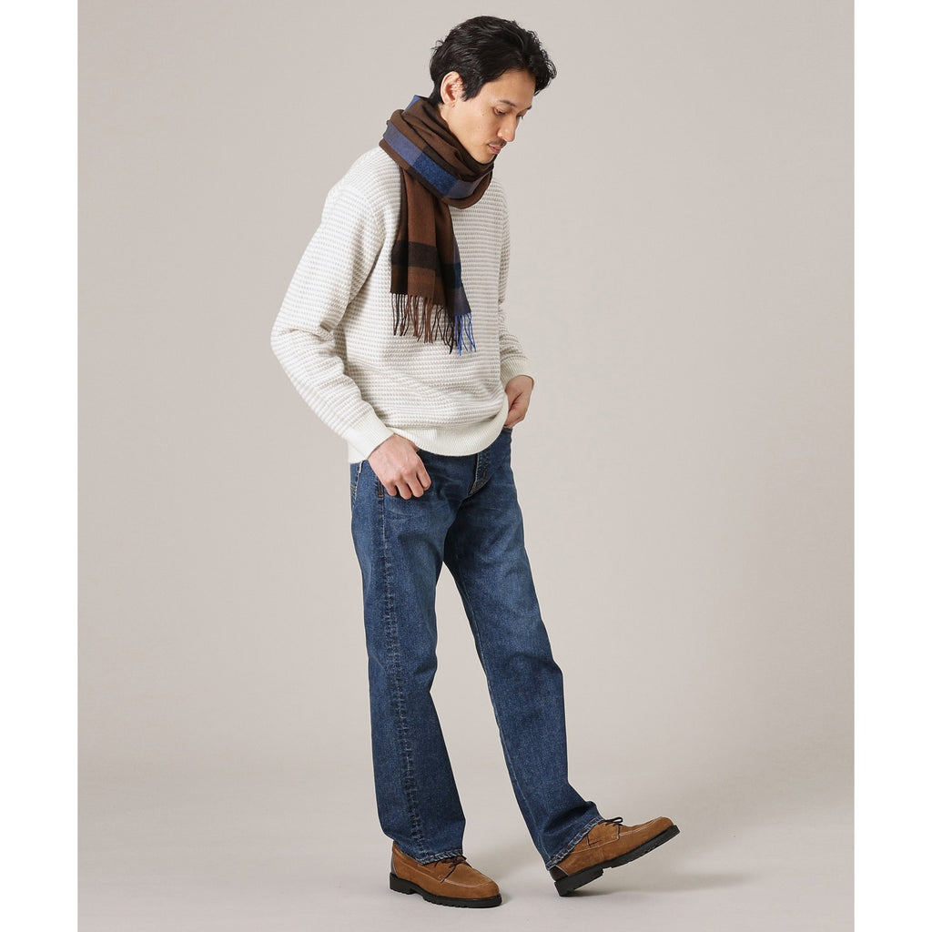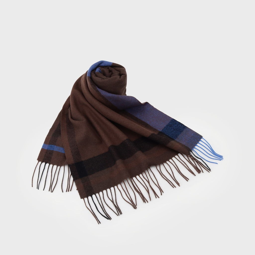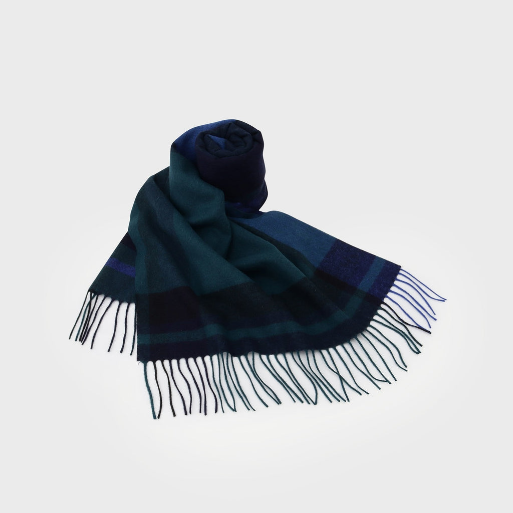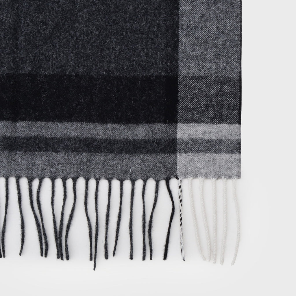 This large tartan check patterned scarf is made from merino wool material produced in Australia.