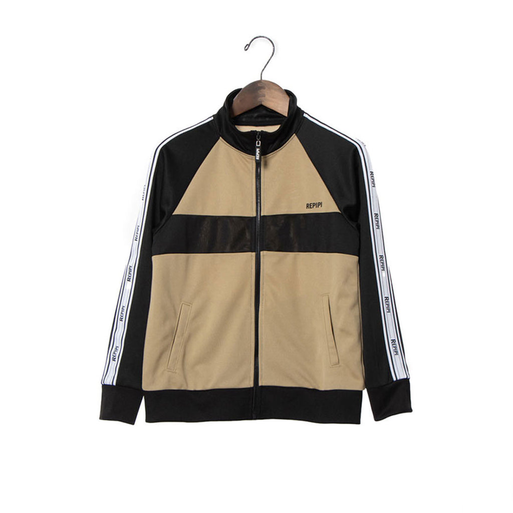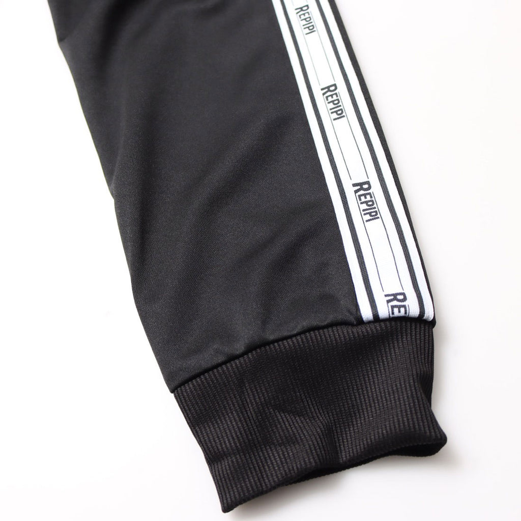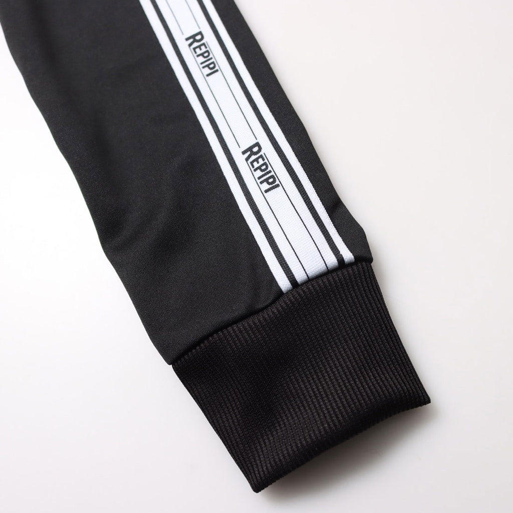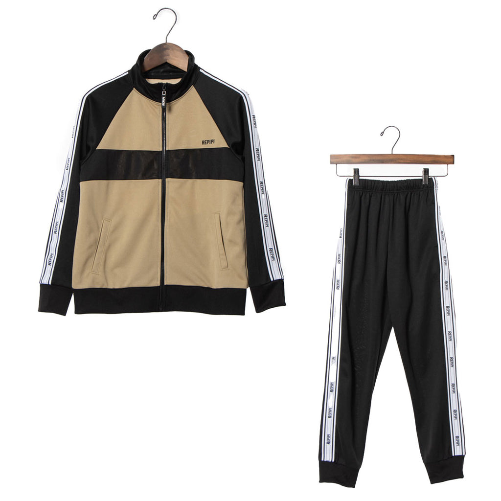 A tracksuit set with a relaxed fit and soft, flexible fabric is the key feature.