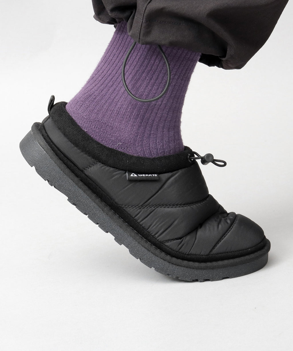 The inside is made of fur material, so it's nice that it keeps your feet warm and cozy even when worn barefoot during a little outing in winter.
