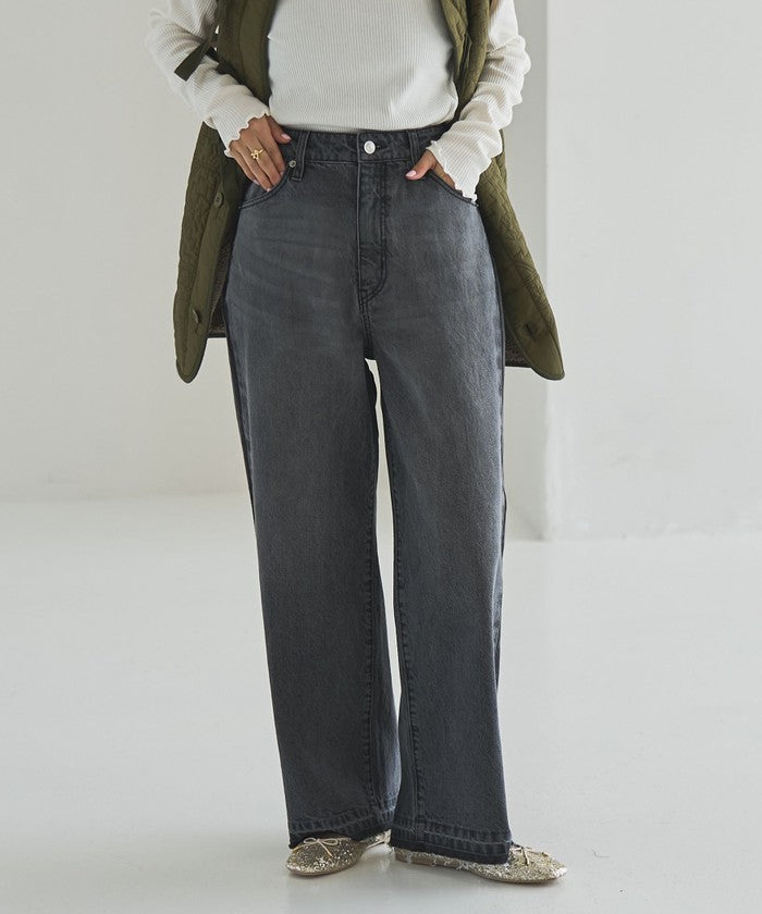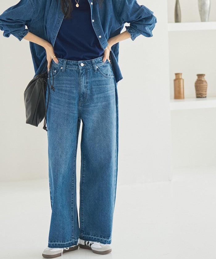 ・A baggy silhouette that falls straight without picking up the hip line & slightly high-waisted for a style-up effect ◎