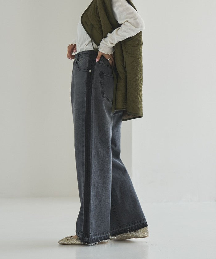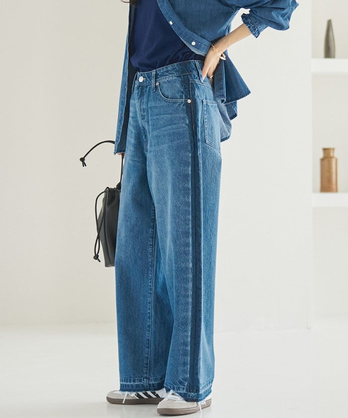 A distinctive design that incorporates the side stripes used in formal pants into denim pants.