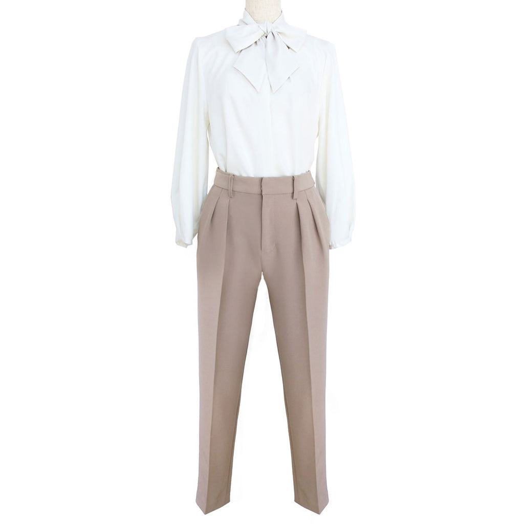 The bow tie at the chest adds a feminine accent, which can be tied in a ribbon knot for a delicate look, or tied once for a more masculine style.