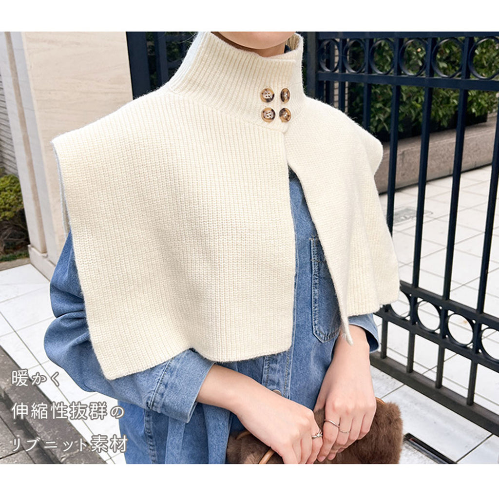 High Neck Front Button Rib Knit Cape Women's Knit Cape Shoulder Wrap Knit Vest Poncho Short Length Neck Warmer Snood Scarf Stole With Buttons Outerwear Autumn Winter Cold Protection Stylish
