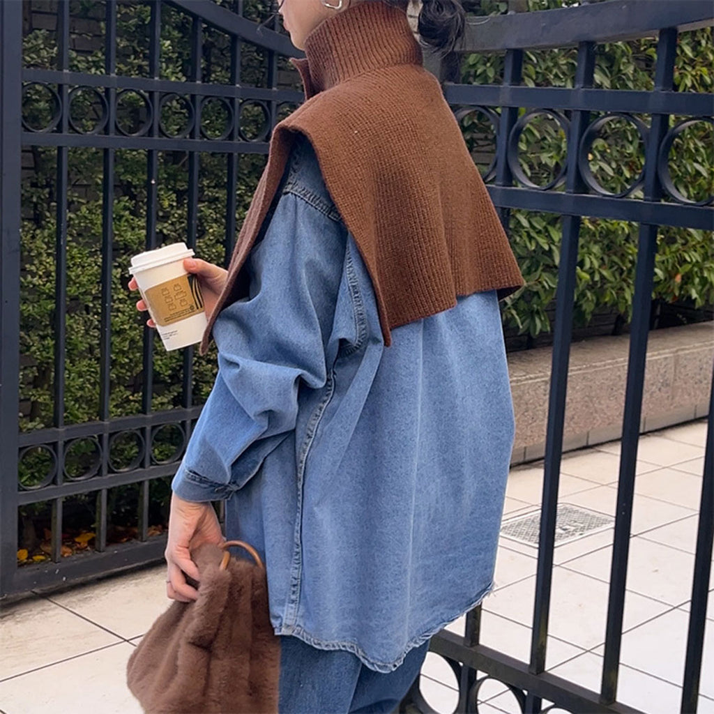 Layered, layering, neck cover, collar cover, fake collar, attached collar, knit vest, short, winter, warm, cozy, neck, shoulder, cute, bicycle, versatile.