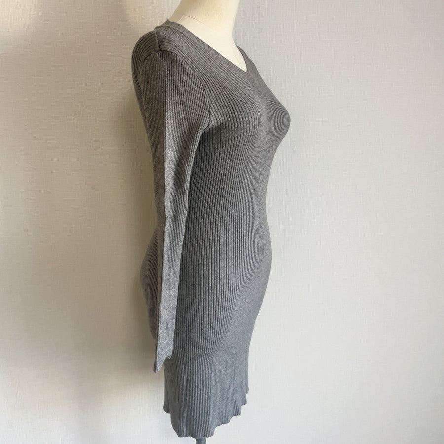 The V-neck design beautifully showcases the décolletage, creating a sophisticated impression.