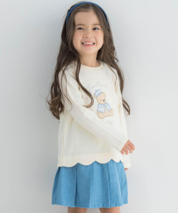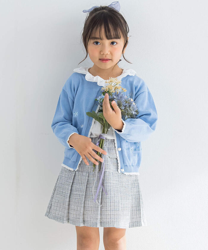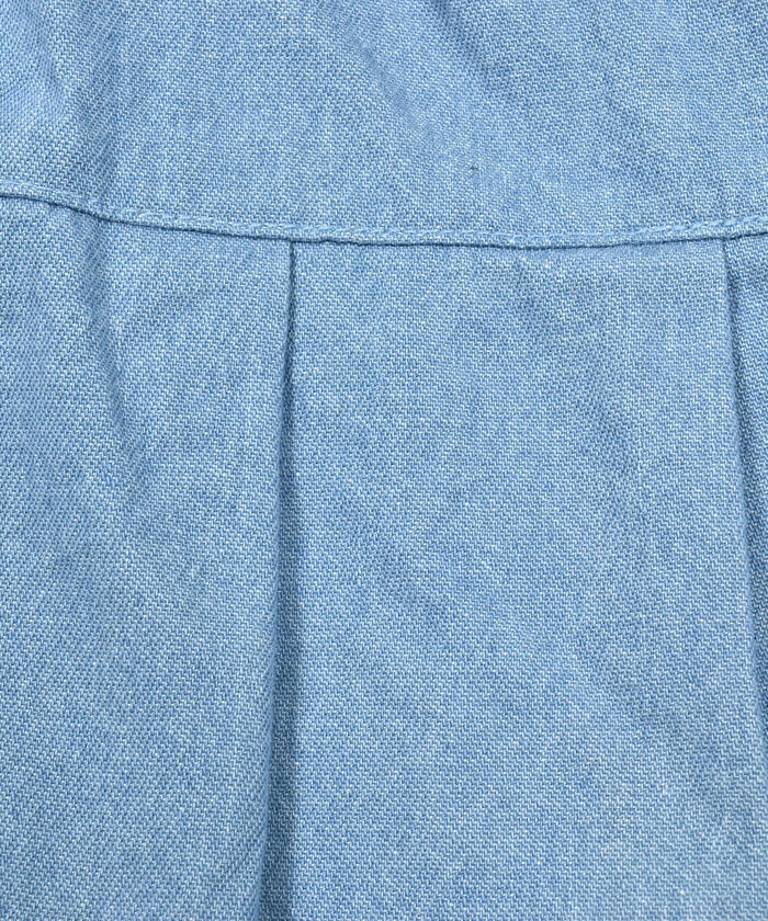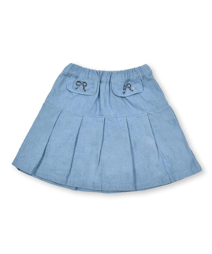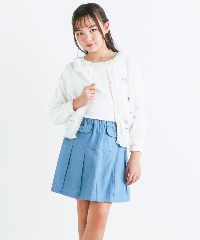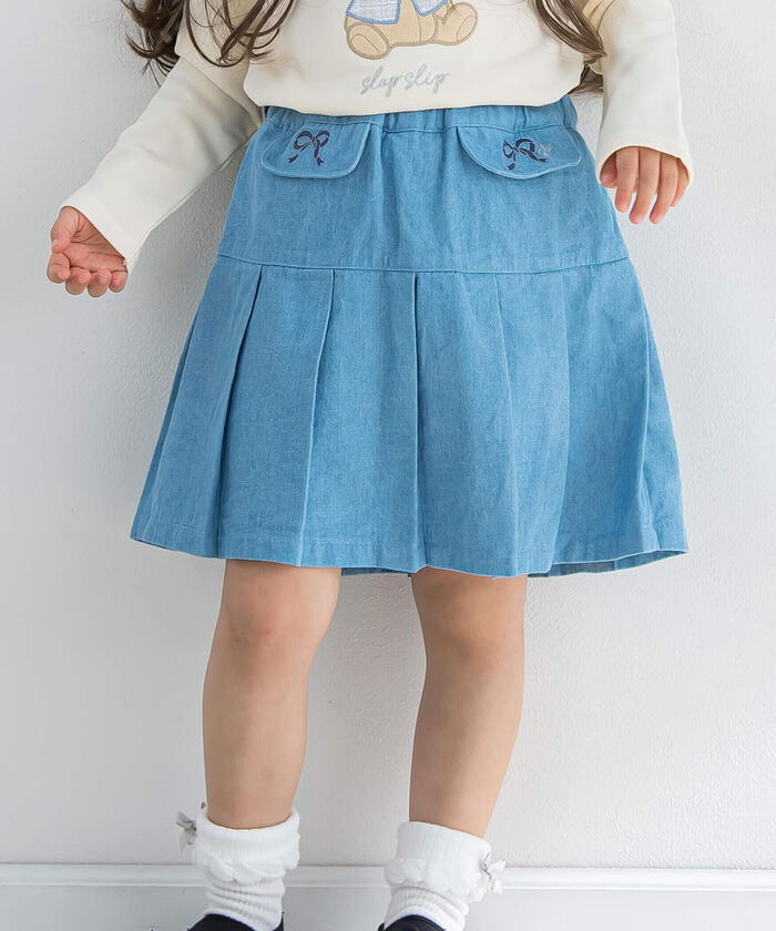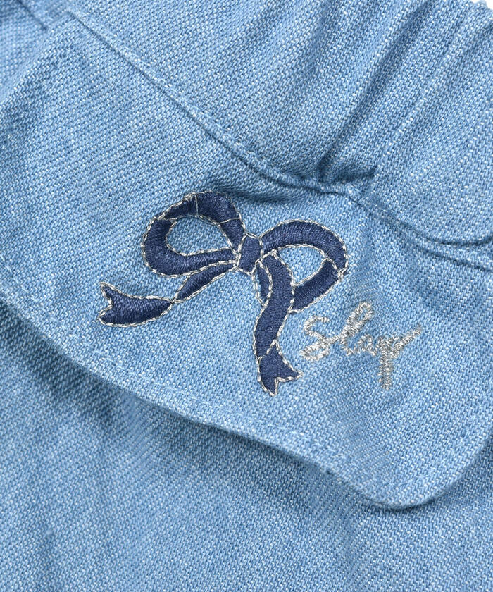 Blue: The denim-like fabric features cute ribbon embroidery.