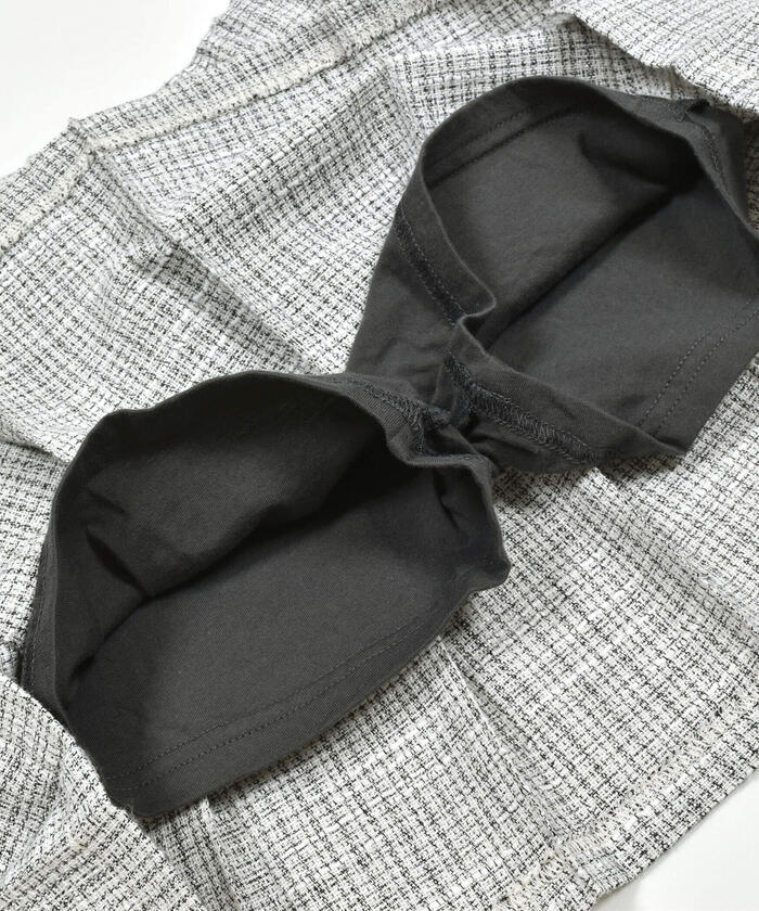 Black type: The tweed material has stylish embroidery designed like buttons.