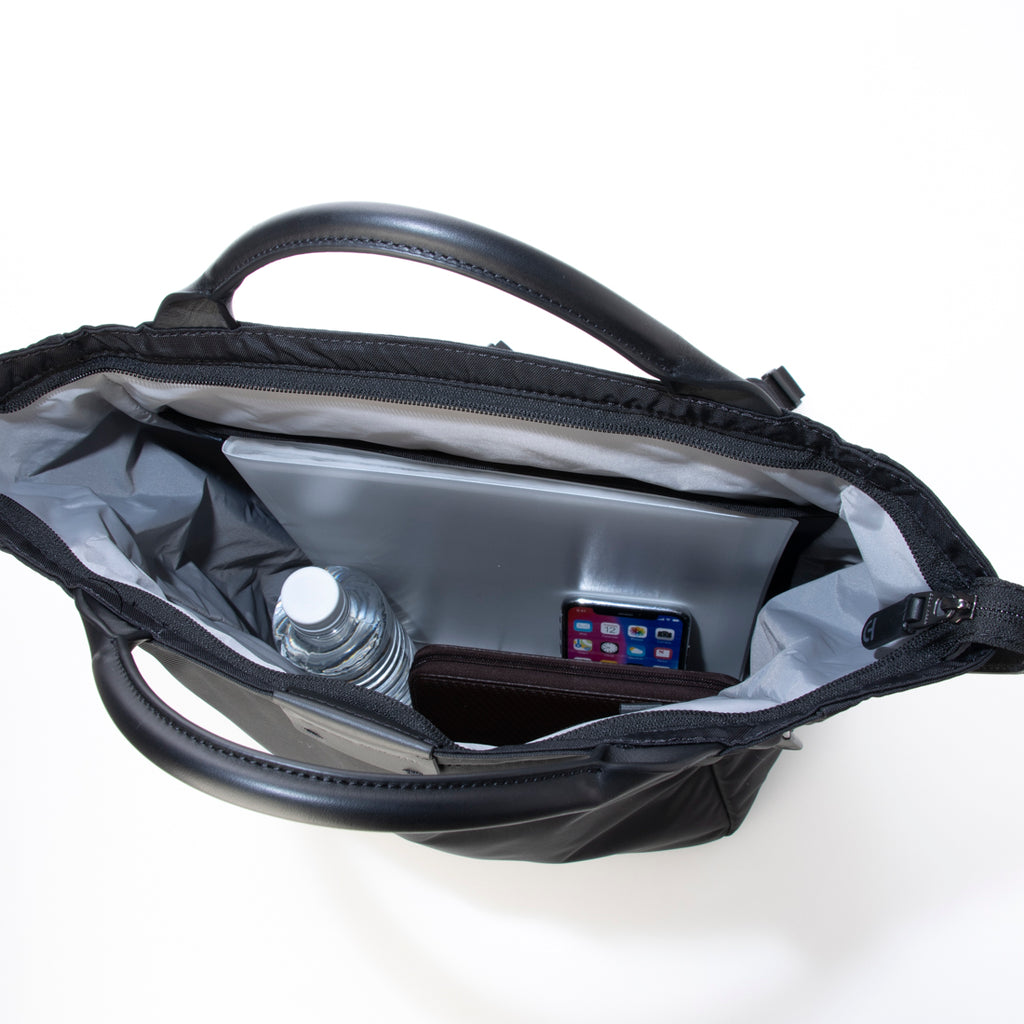 The spacious interior is equipped with multiple pockets, allowing you to carry your essential items neatly and safely.