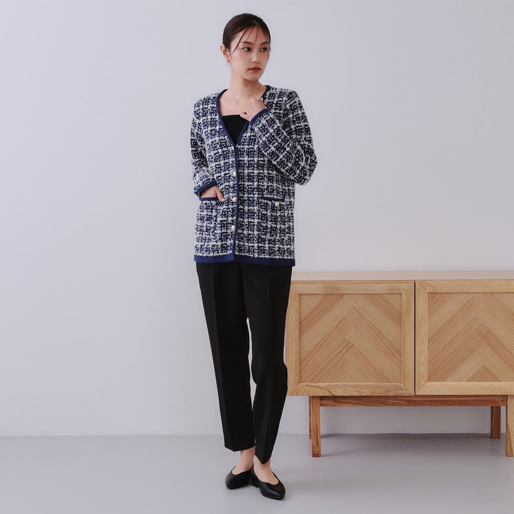 A beautiful leg silhouette that tapers nicely from the waist, which has been made sleek, down to the hem.