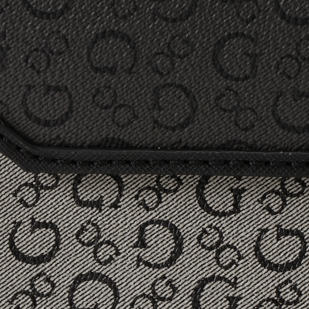 A stylish jacquard-patterned handbag in monochrome colors.