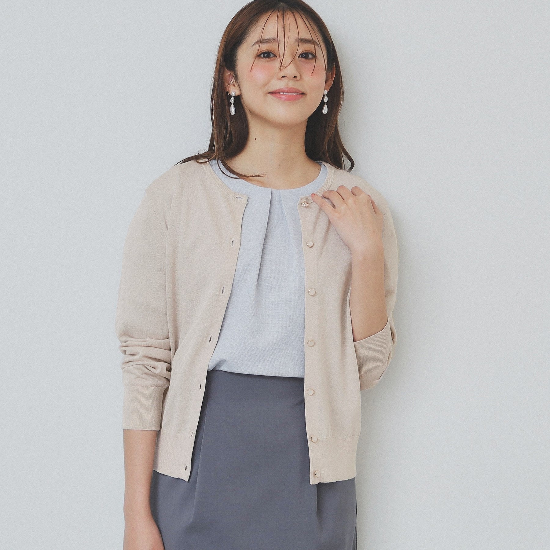 A versatile basic compact crew neck cardigan.