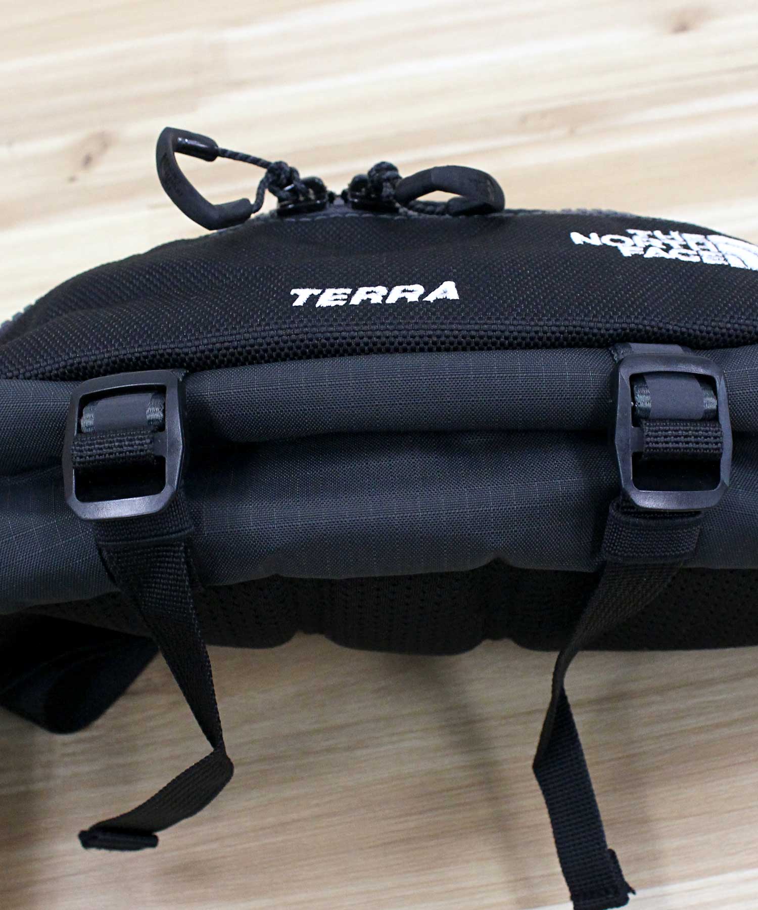 Front Face: 1200D recycled polyester, non-PFC DWR finish.