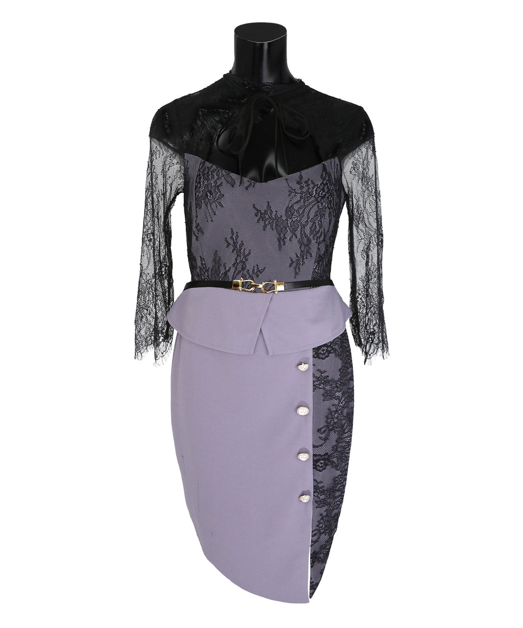 The skin透ける from the lace from the décolletage to the sleeves is sexy.