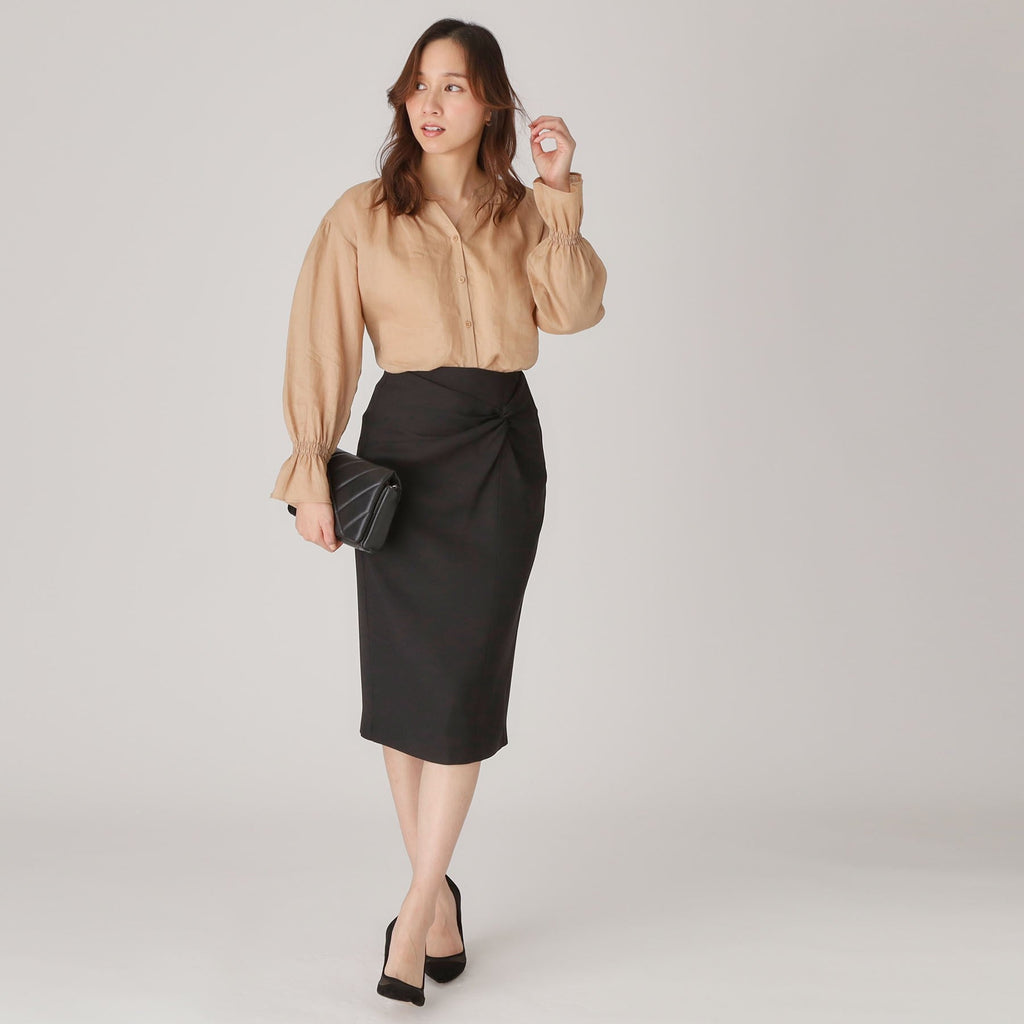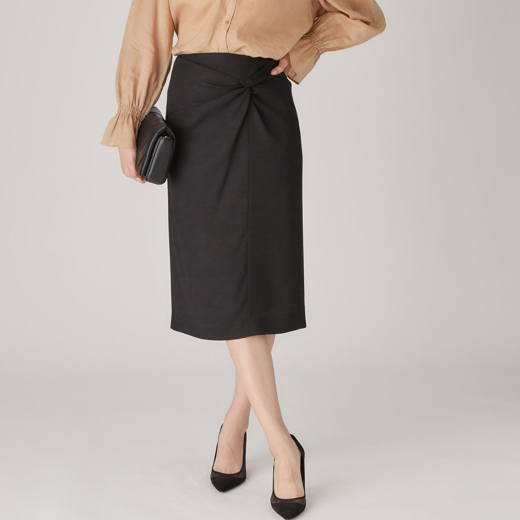 Using a supple and draping Amundsen material, we finished it with design points of asymmetric twists and feminine draping.