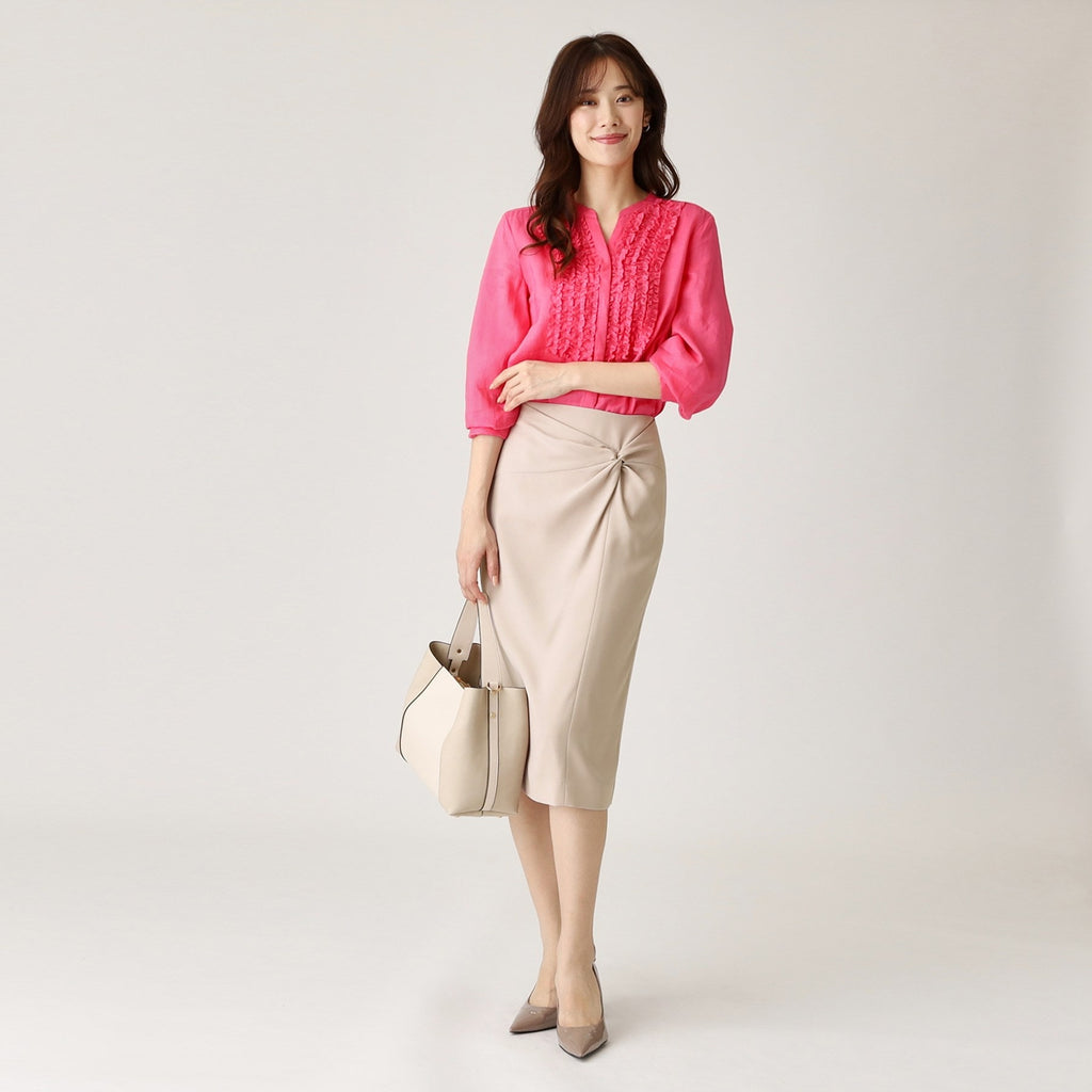 We will also offer a blouse (187-82456) and pants (item number 187-62406) in the same material, so you can wear them as a set.