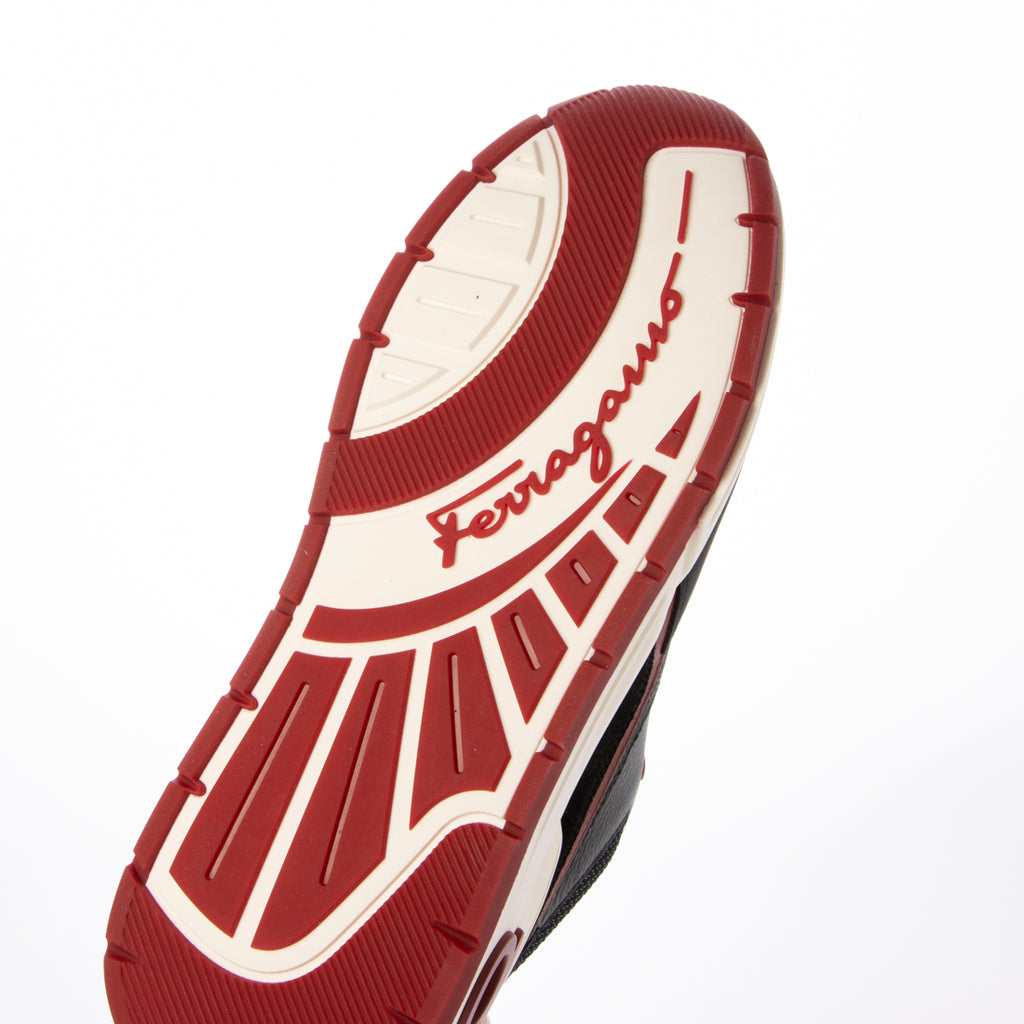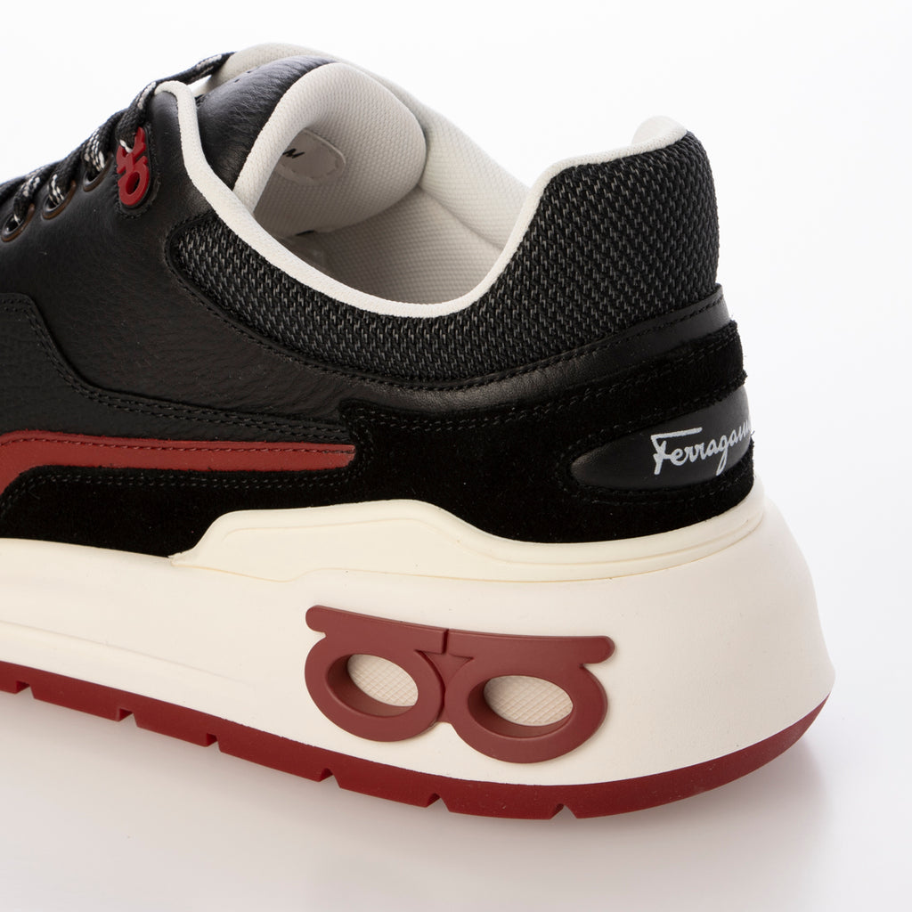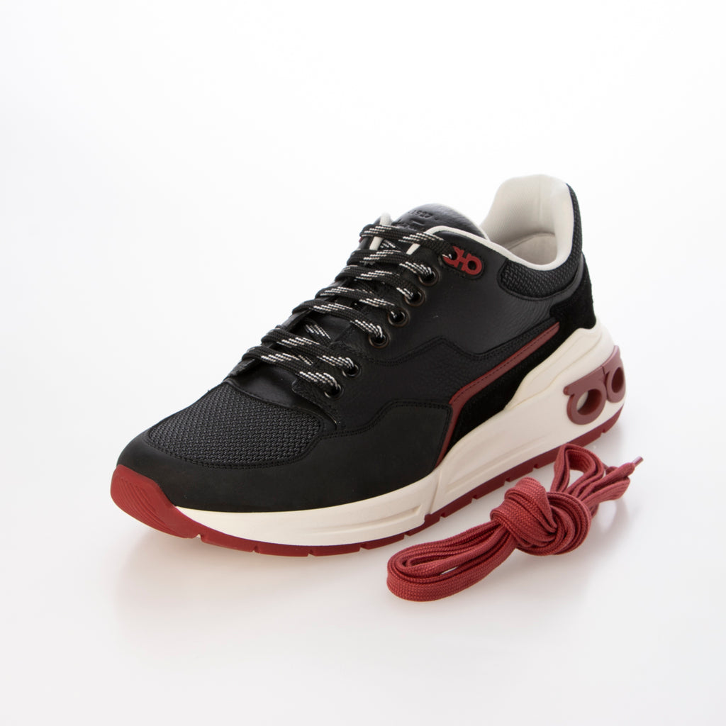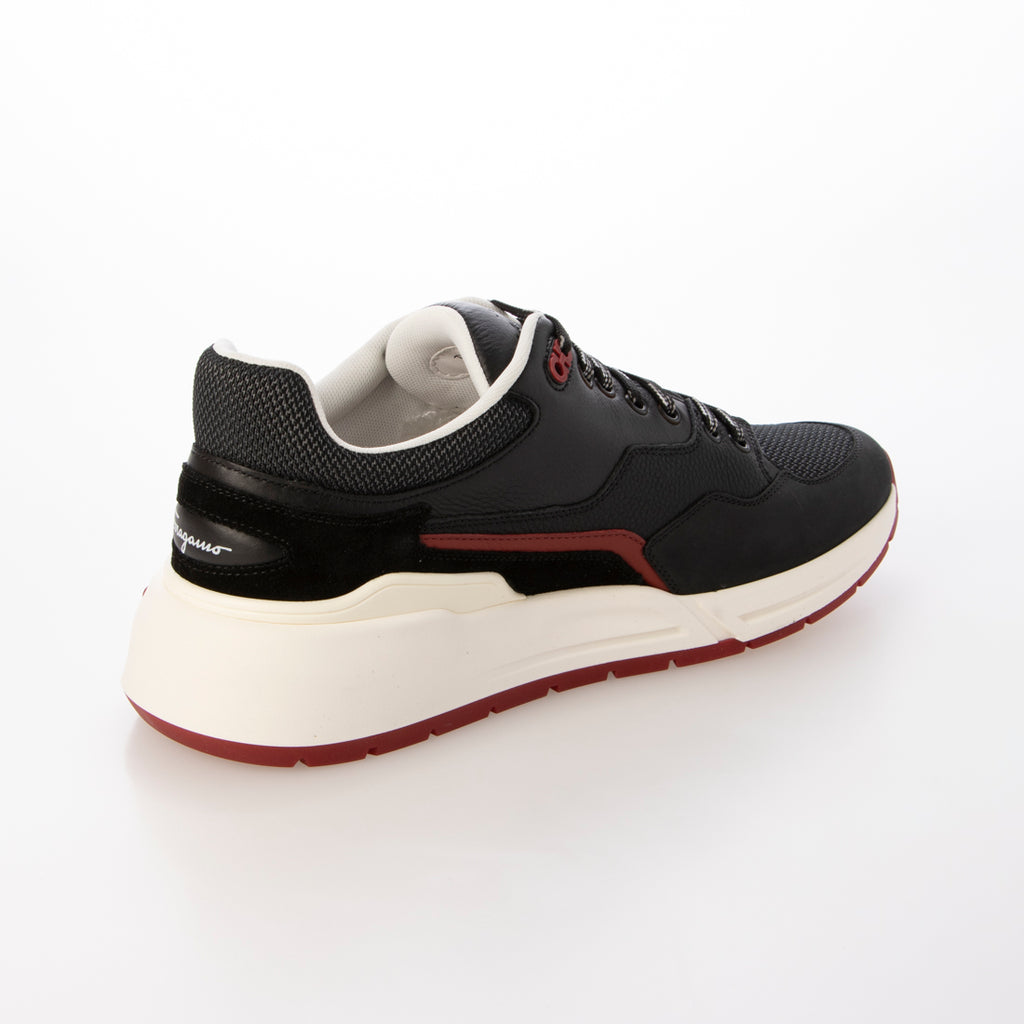 The brand logo and three-dimensional motif applied to the heel highlight a sophisticated impression.
