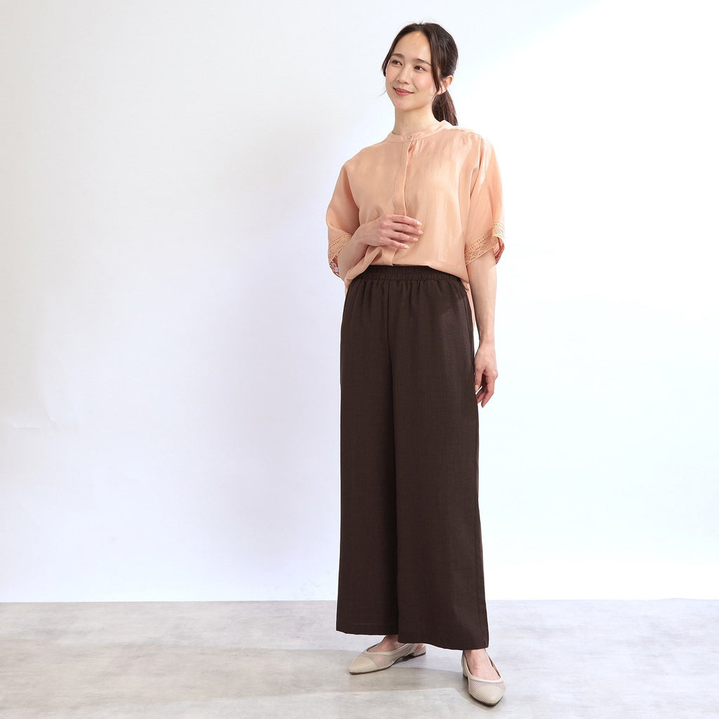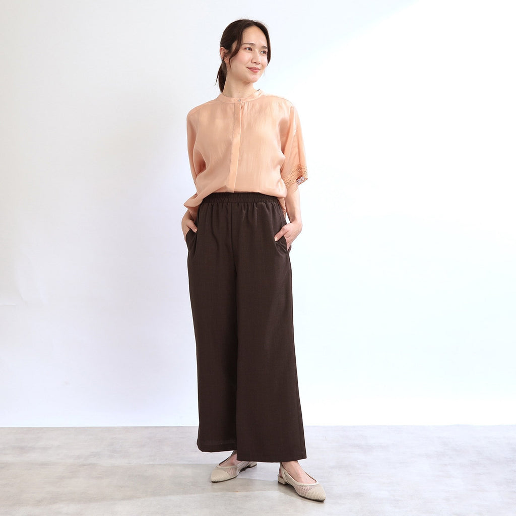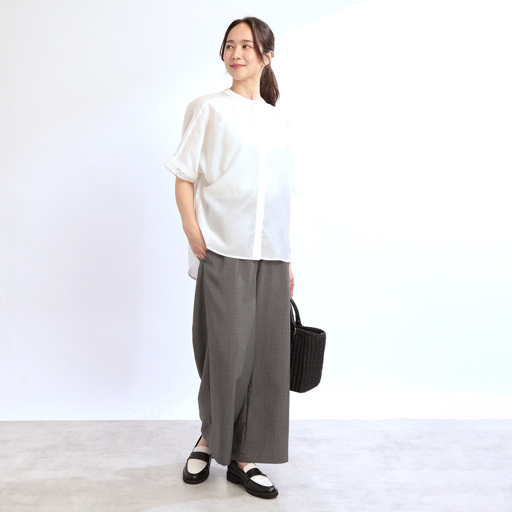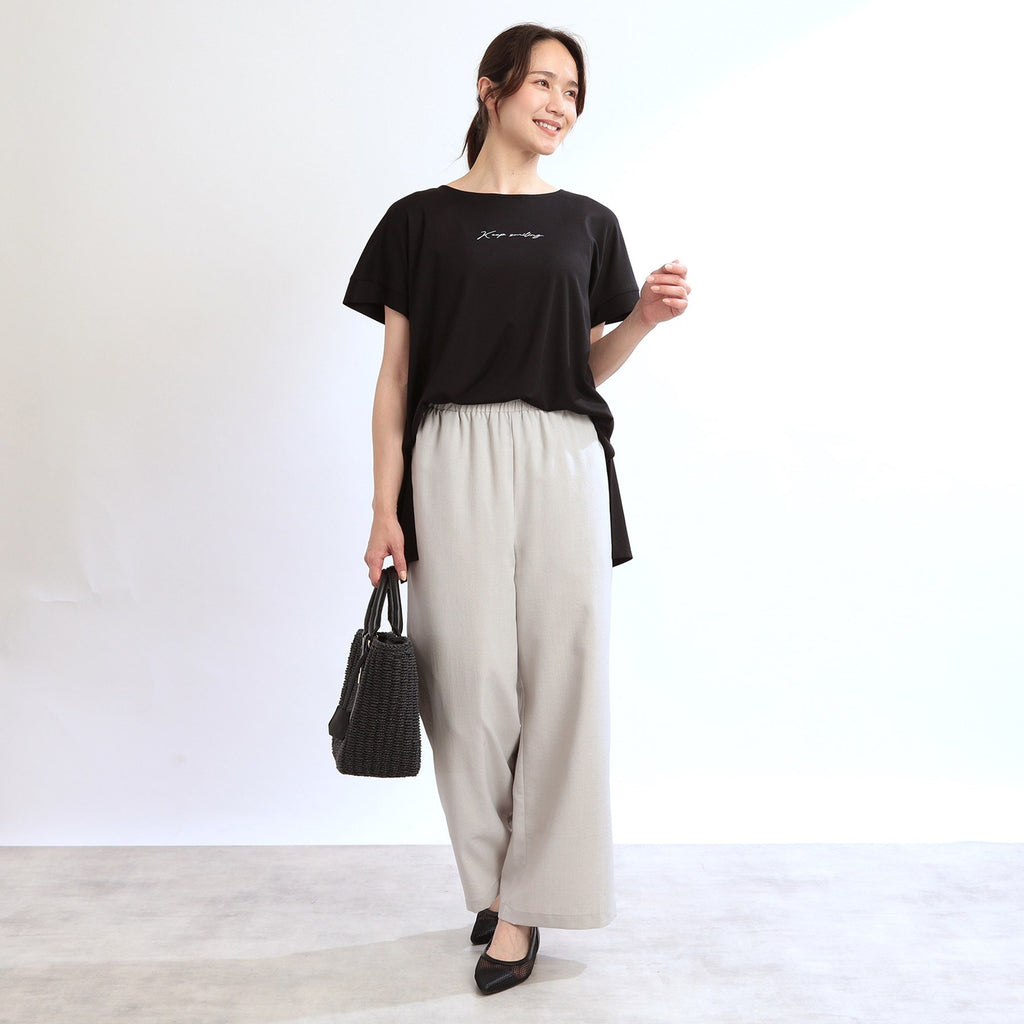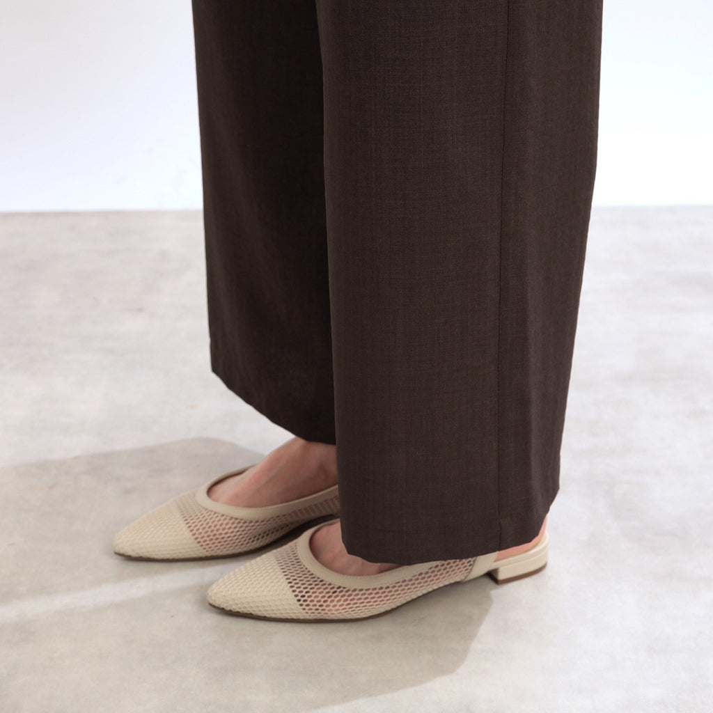 Although it is a wide type, the thigh area is slightly narrower to give a sleek fit, and the silhouette is designed to create a leg-lengthening effect that widens towards the hem.