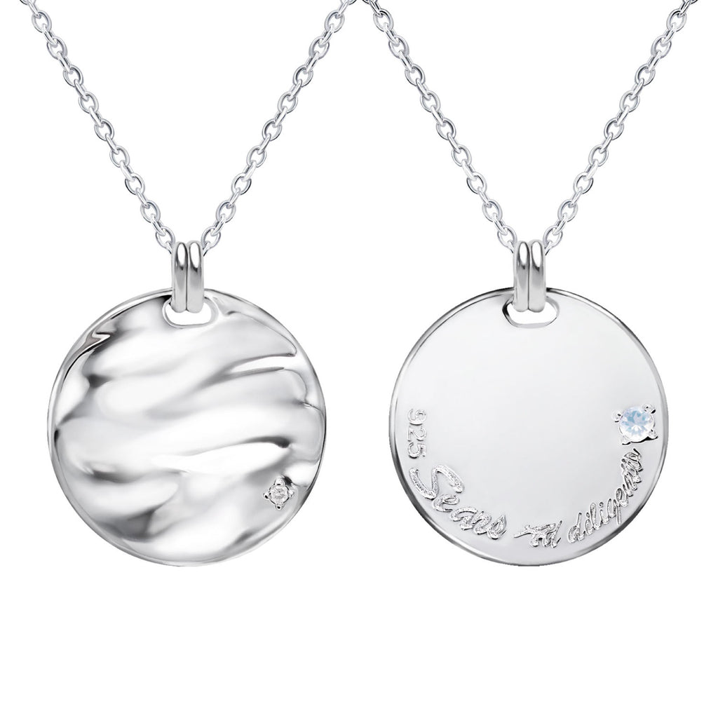 A popular women's necklace featuring a moon motif, set with an admired diamond and 12 selectable birthstones.