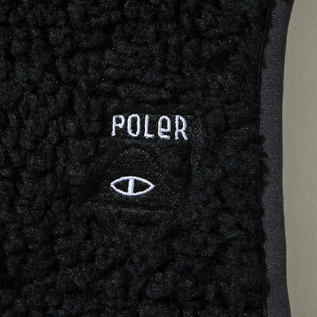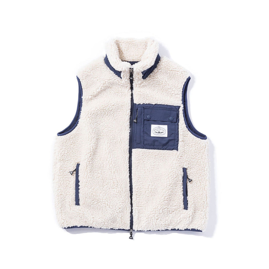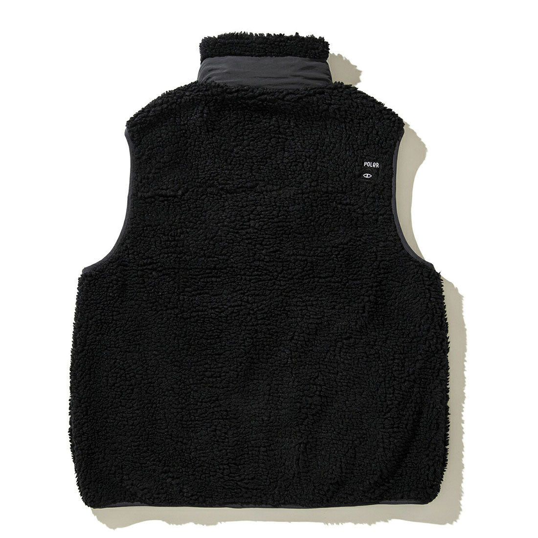 A jacquard fabric sherpa vest. With a basic design that is easy to incorporate into daily outfits, it also serves as a warm inner layer, making it usable for a long season. It features practical pocket specifications and delightful details like the POLER logo zip tab.