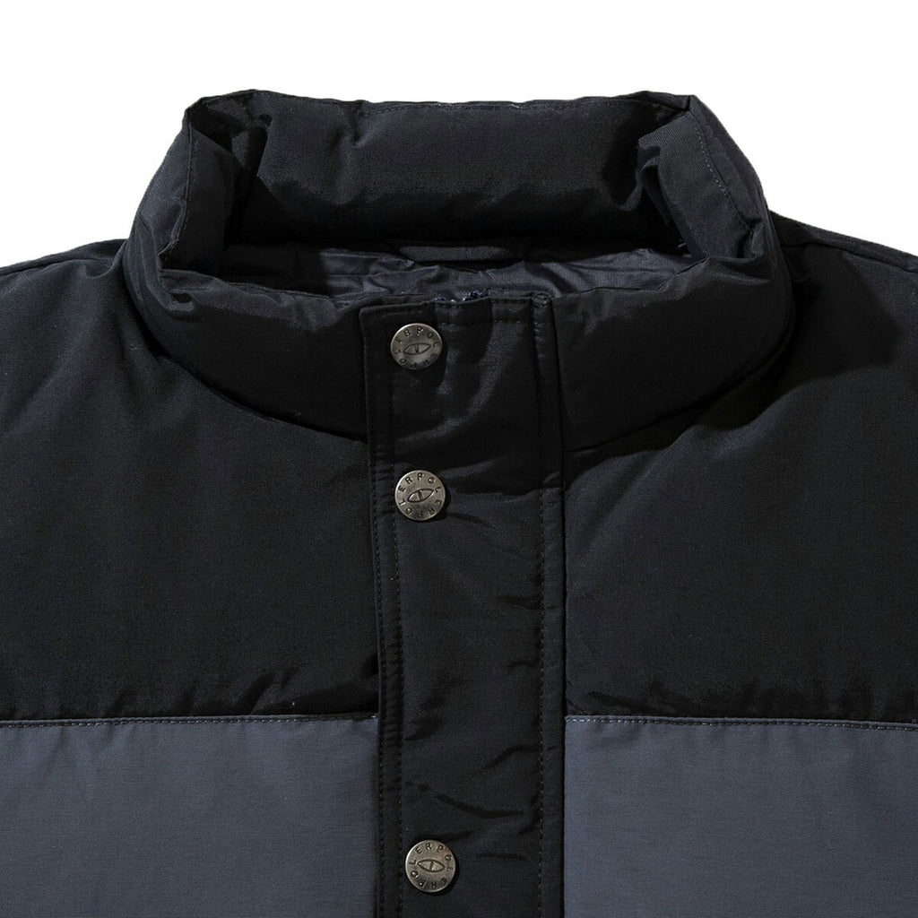 A down vest made with 60/40 cross fabric that evokes scenes from past outdoor adventures.